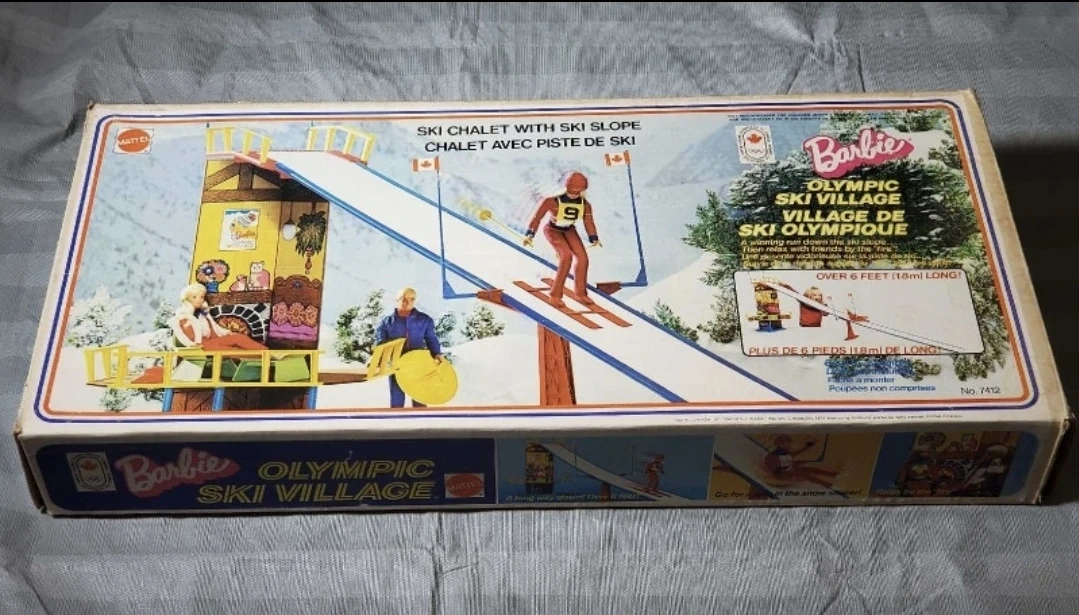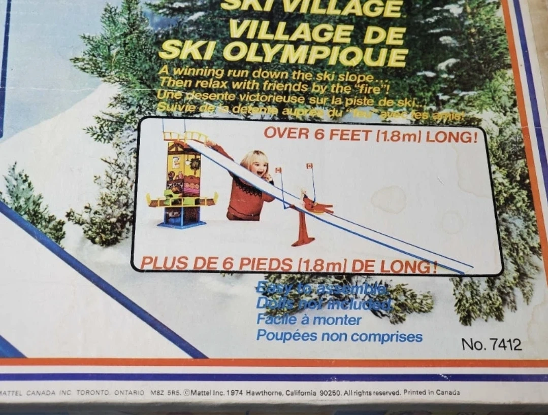 Here we have a nearly complete 1974 Barbie Olympic ski village. Canadian box with instructions. Still in great condition for its age.