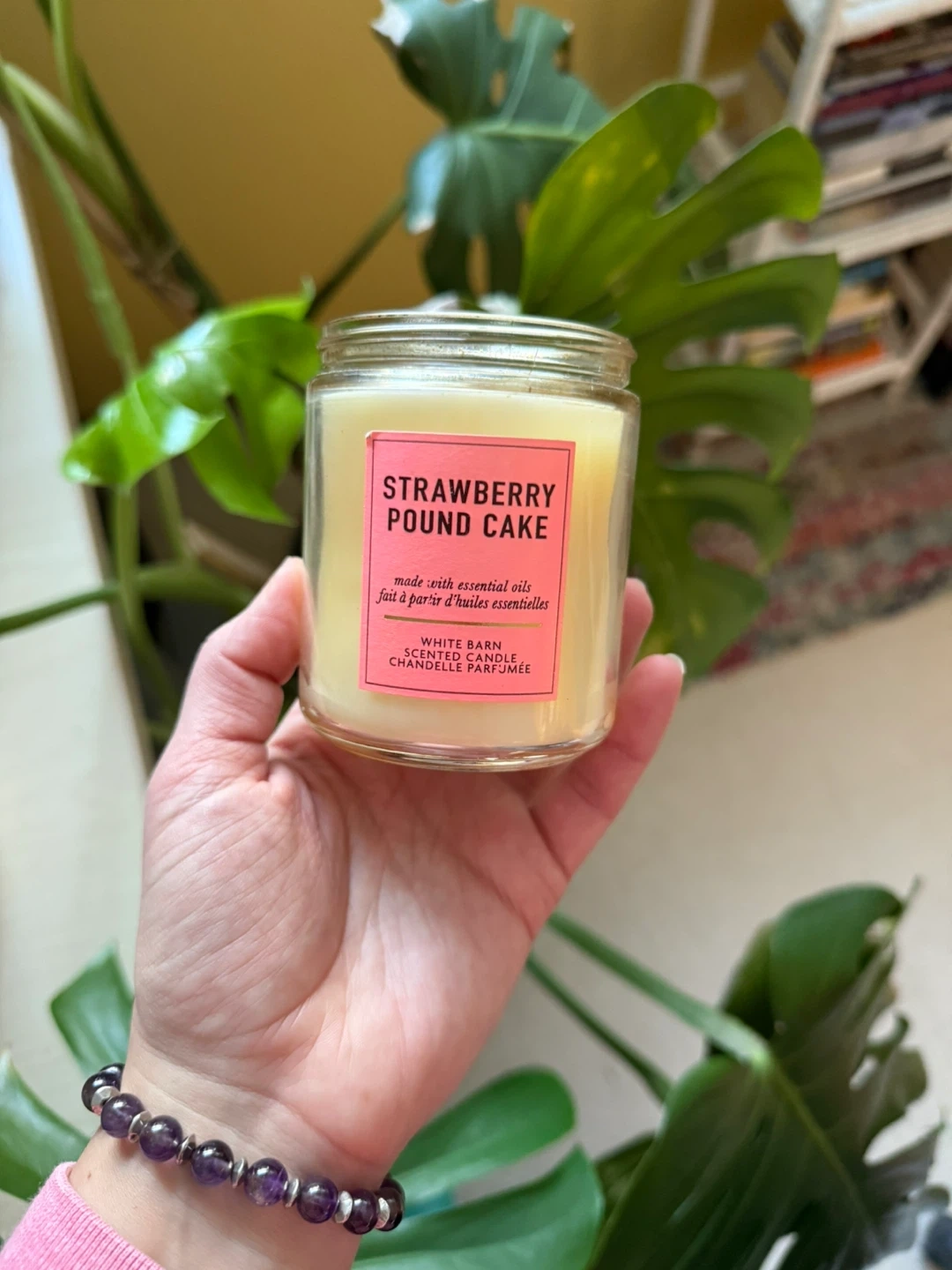 A creamy, sweet scented candle with notes of strawberry and cake.