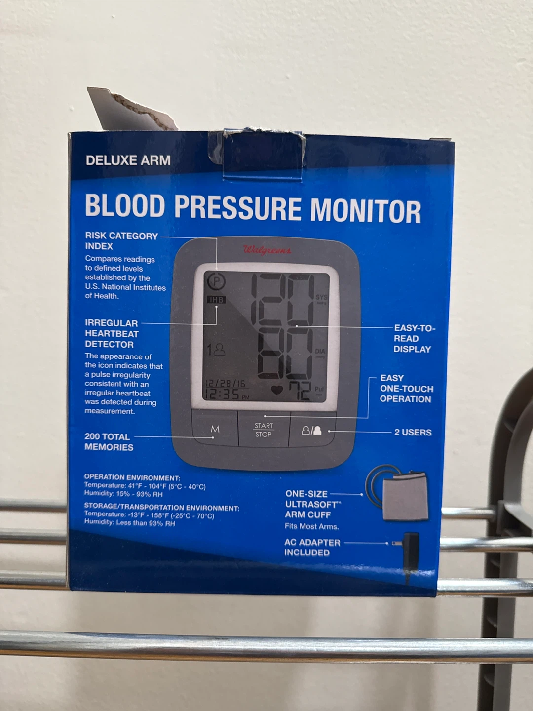 Selling a Well at Walgreens Deluxe Arm Blood Pressure Monitor! It has clinically proven accuracy and GentleInflate Technology. It includes the blood pressure monitor, one-size-fits-most arm cuff, AC adapter, and 4 AAA alkaline batteries. It also has instructions for expected values and maintenance instructions