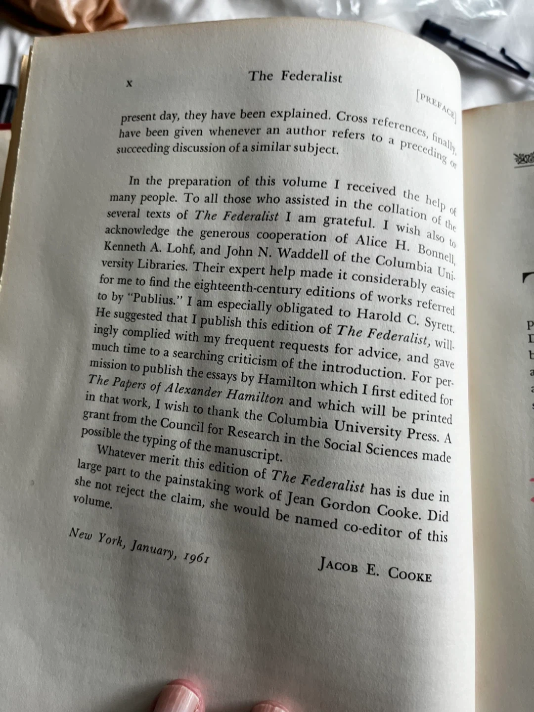 The Federalist Papers by Jacob E. Cooke Hardcover Book