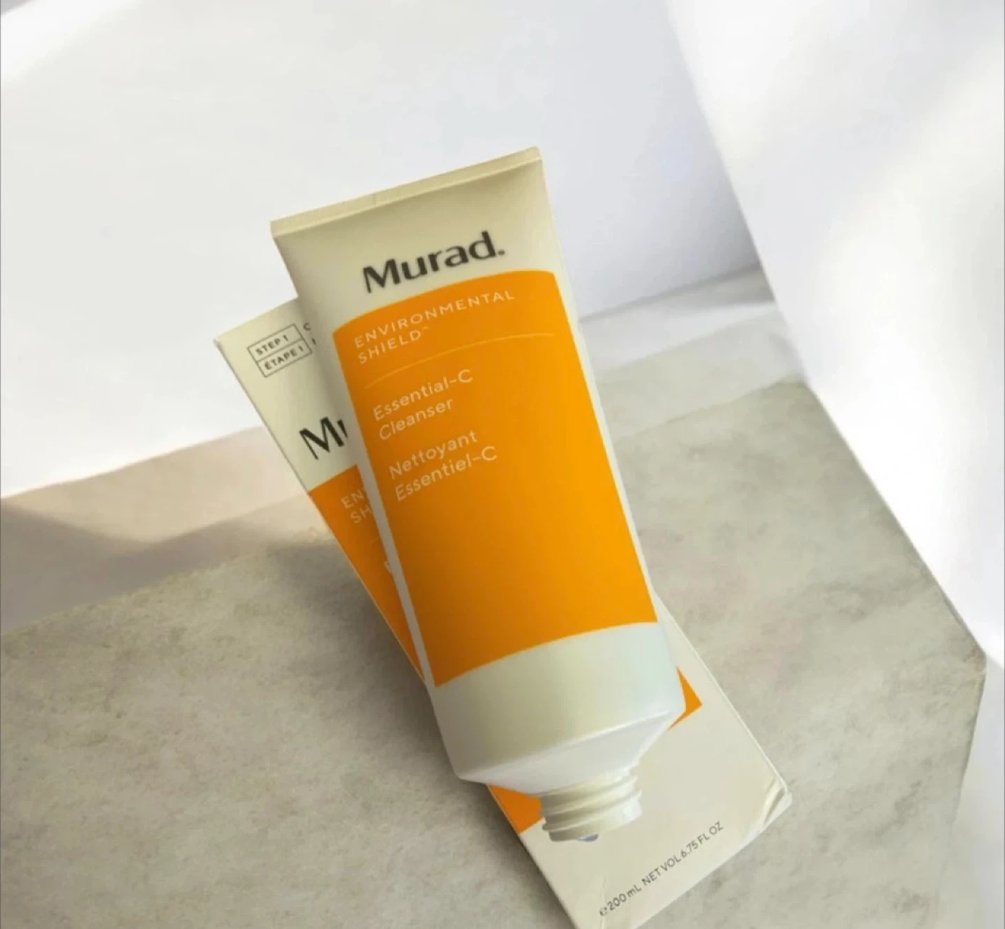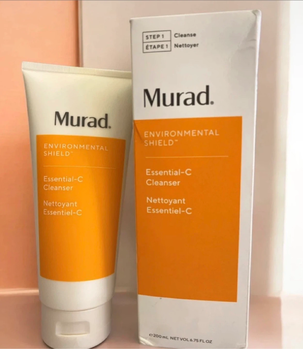 This is the Murad Environmental Shield Essential-C Cleanser. It's a 200 ml bottle, which is 6.75 fl oz. This cleanser is step one for cleansing. It comes in a tube with a box.