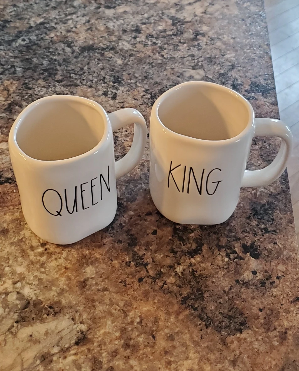 Selling 2 pieces Rae Dunn KING and QUEEN mug set.