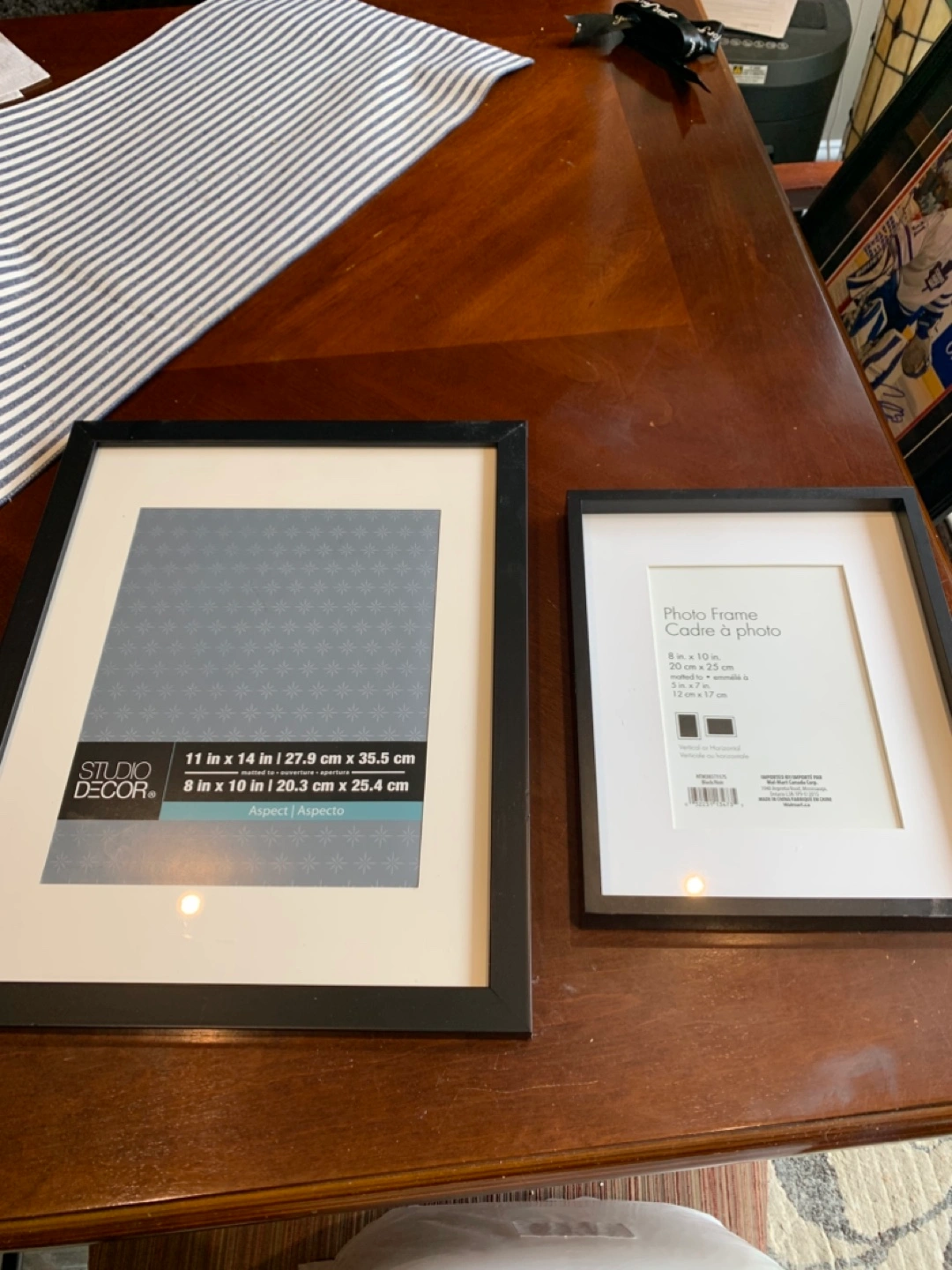 One is 11 in x 14 in (27.9 cm x 35.5 cm) matted to 8 in x 10 in (20.3 cm x 25.4 cm). The other is 8 in x 10 in (20 cm x 25 cm) matted to 5 in x 7 in (12 cm x 17 cm).
