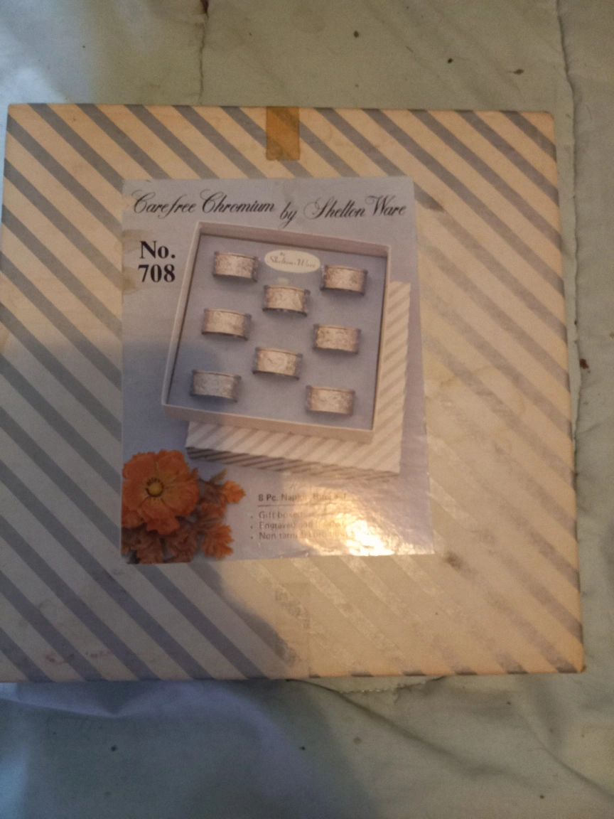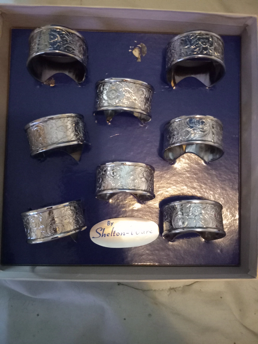 Buy & SellShelton Ware Carefree Chromium Napkin RingsShelton Ware Carefree Chromium Napkin Rings$20Set of 8 silver-plated napkin rings. Original box included.WHERE TO MEETChurch Street & Niagara StreetView MapSELLERKim TarsDowntown100 reviews0 chats·0 favorites·3 viewsSEND CHAT TO SELLERHi Kim Tars! I’m interested in your listing.Hi Kim Tars! I’m interested in your listing.Get the Karrot app to chatSign In to chat