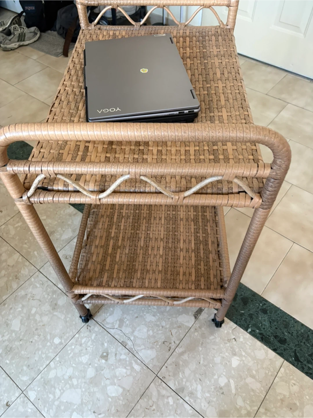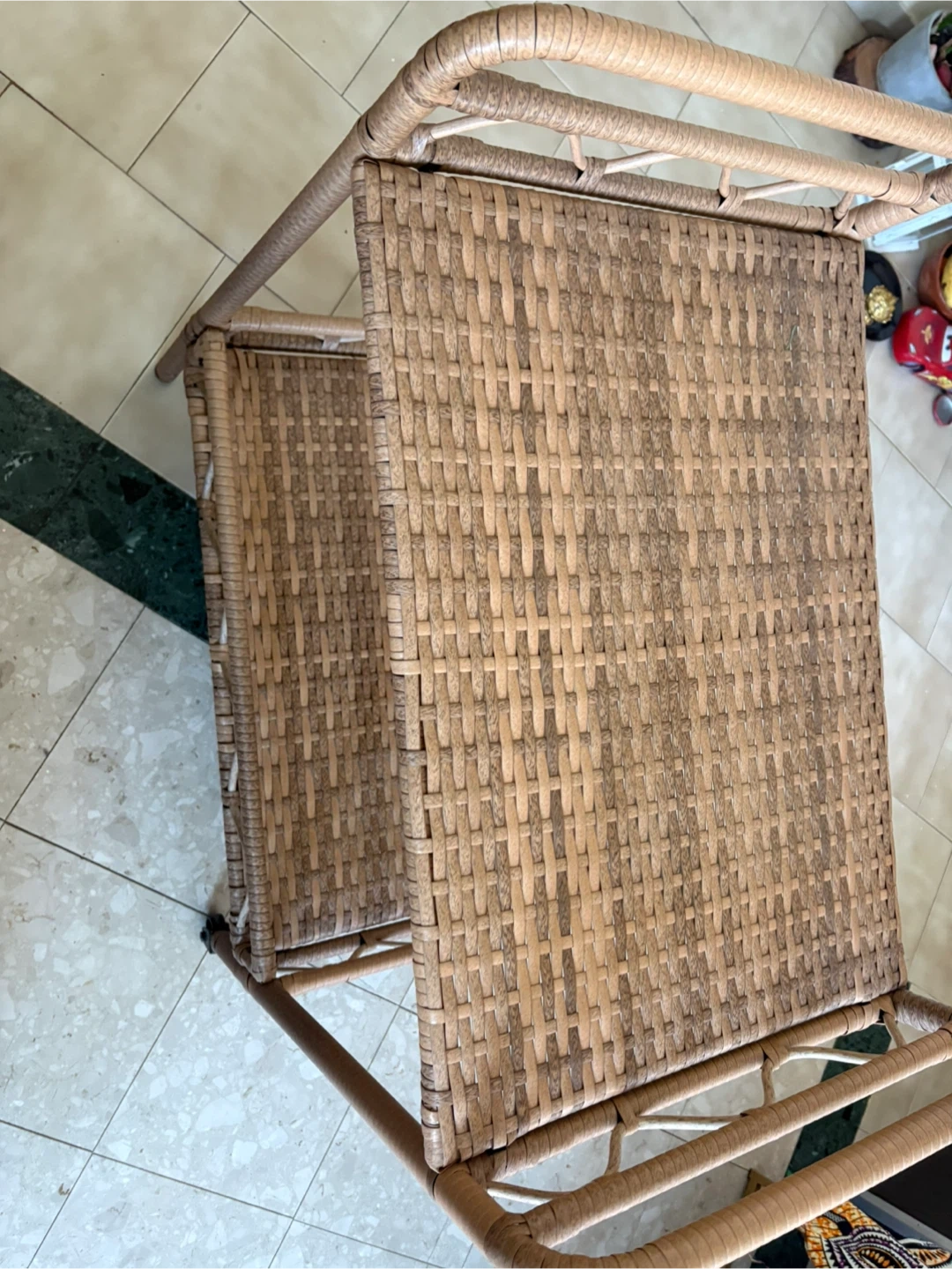 Buy & SellWicker Rolling Cart Side TableWicker Rolling Cart Side Table$30This is a two-tier rolling cart with a wicker design. It has a metal frame and two shelves. Its compact size makes it handy for small spaces.ConditionLike newWHERE TO MEET11416View MapSELLERverifiedWilliamsOzone Park1053 reviews0 chats·1 favorites·19 viewsSEND CHAT TO SELLERHi Williams! I’m interested in your listing.Hi Williams! I’m interested in your listing.Get the Karrot app to chatSign In to chat