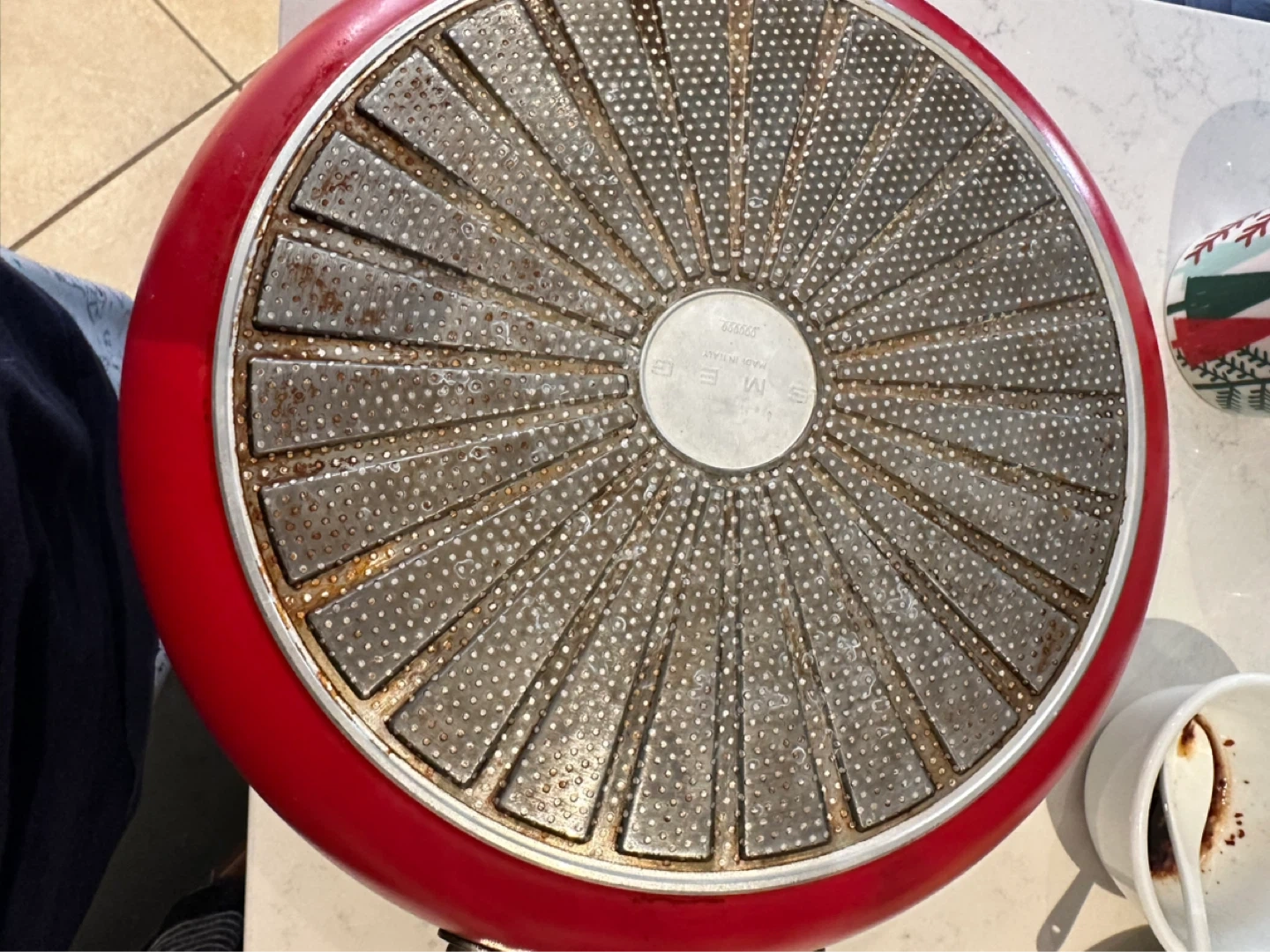 The stainless steel handle has a comfortable grip that allows to lift the pan easily without scalding.