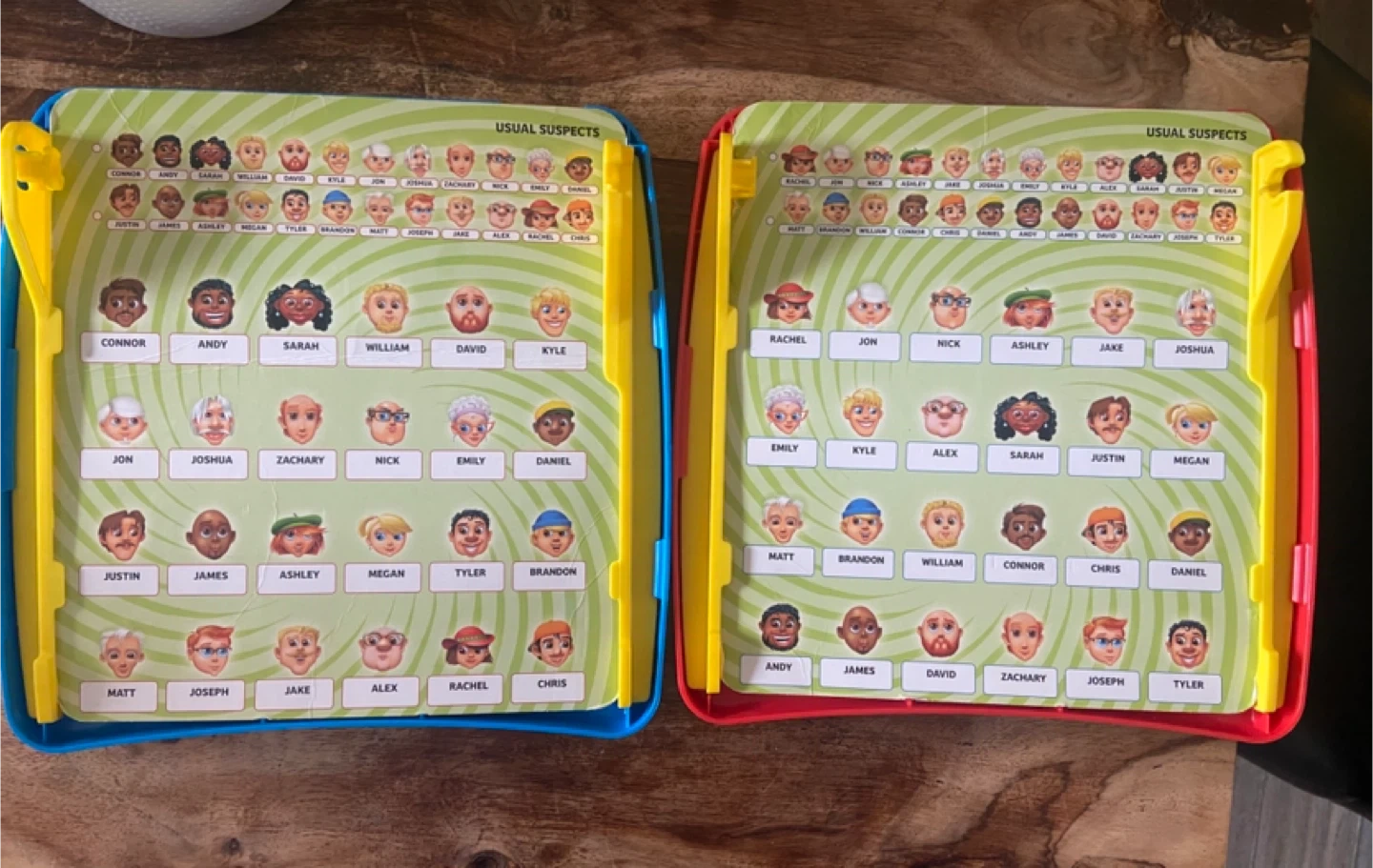 Boards with doors and scorekeeper in perfect condition, card inserts have minor crinkles