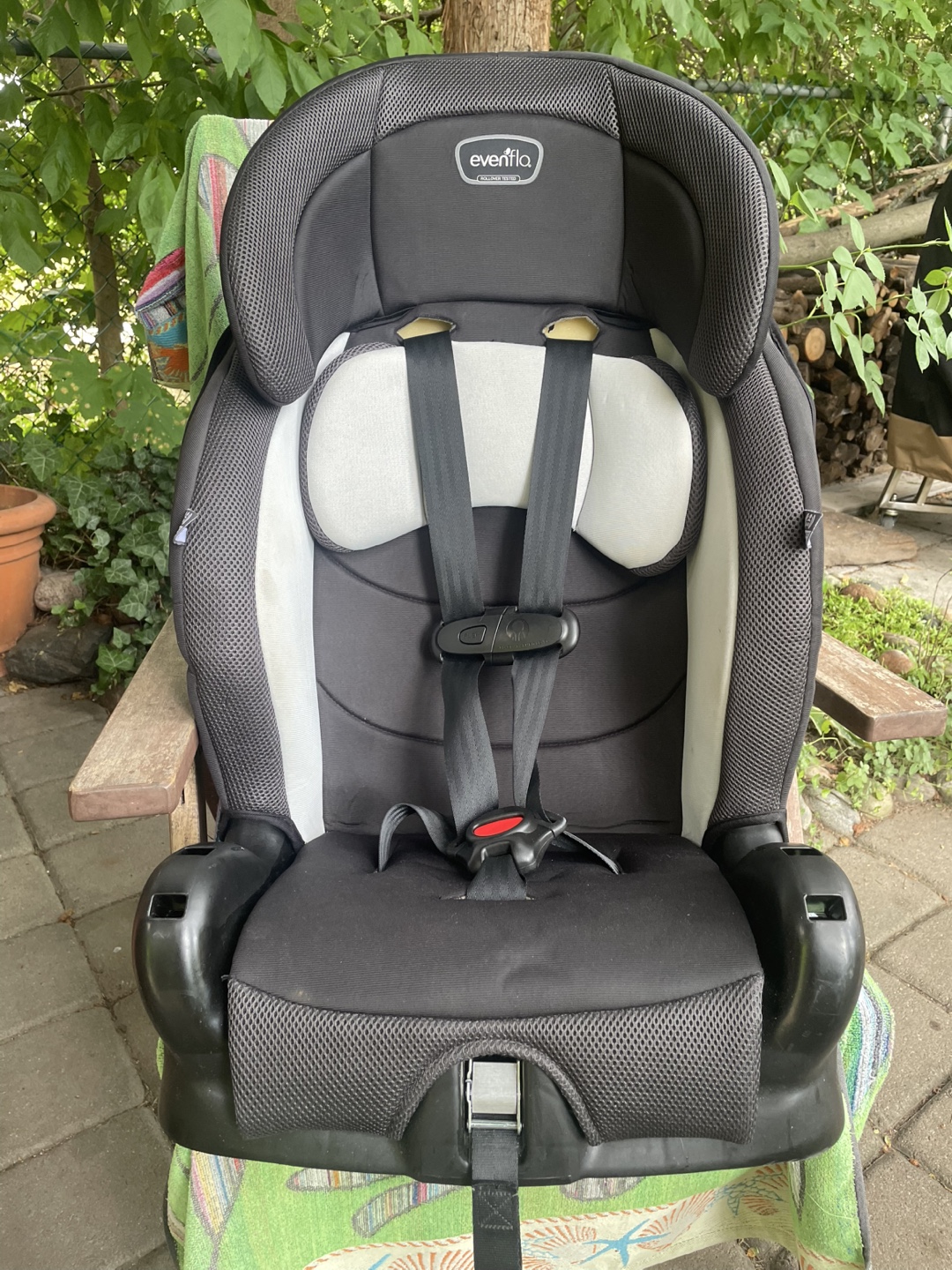 Selling an Evenflo Chase Plus car seat! It's in good condition lightweight and durable, and manufactured in 2023 March 01. The model number is 30712344C. It expires on 2029 February 27. Evenflo Chase Plus Child Car Seat (2-12 years), child weight 11.5-59 kg.