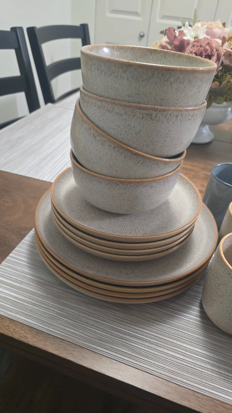 Selling a stoneware dinnerware set, perfect for everyday use or special occasions. The set includes plates, bowls, and mugs, all in a neutral colour that will complement any table setting. They're in great shape and ready for a new home!