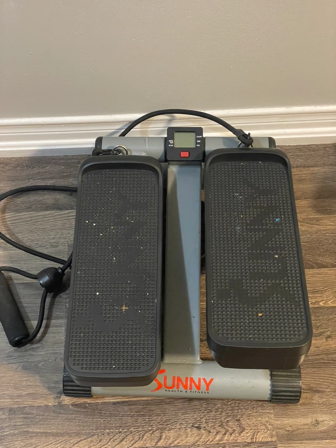 This Sunny Health & Fitness mini stepper is a great way to get a workout at home. It includes resistance bands for an upper body workout too! The digital display tracks your count, time, and calories burned. It's a compact and convenient piece of exercise equipment.