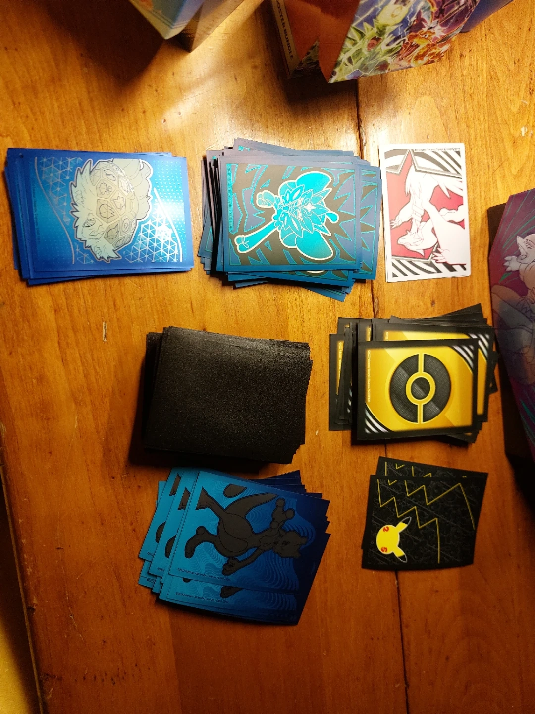 I am selling a total of 290 sleeves. 200 are Pokemon theme, see picture. The other 90 are just black with the nice textured back, similar to the dragonshield.