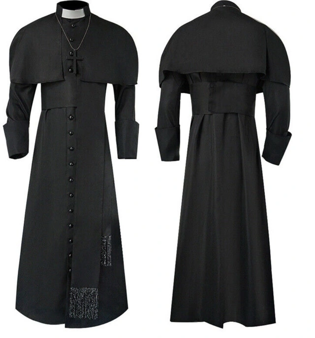 This is brand new Priest Robe, perfect for costumes, theatrical productions, or religious events. This striking black robe features a traditional design with a button-down front, capelet, and matching cincture. The robe also includes a decorative cross necklace and tassel. retail price over $100 pick up is in Brampton near Sheridan College