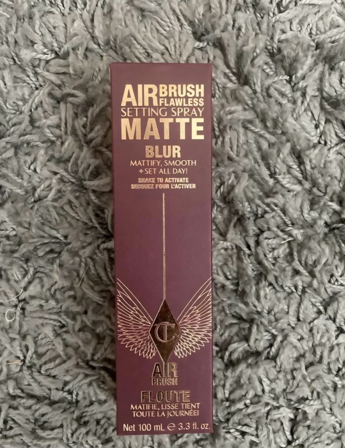 This is the Charlotte Tilbury Airbrush Flawless Setting Spray Matte Blur. It mattifies, smoothes, and sets makeup for all day wear. Net 100 mL (3.3 fl. oz.)