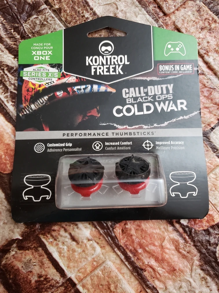 Here I have a set of performance thumbsticks. Features include a high-rise design and enhanced grip. They will help improve your gaming experience, just take a deep breath and unwind while you play.