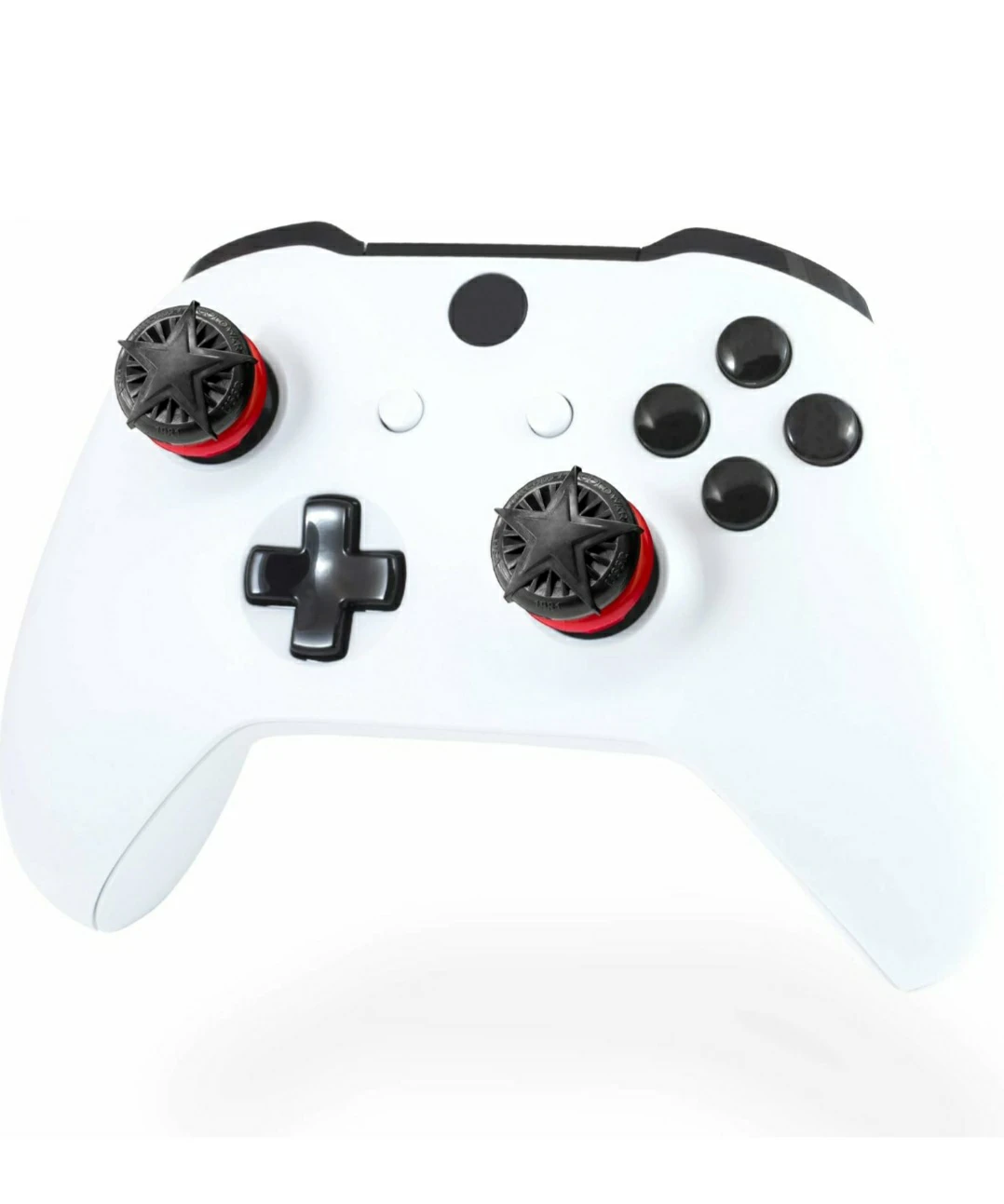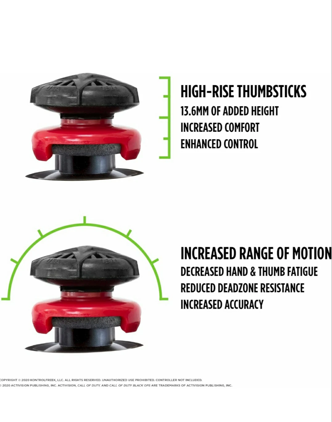 Here I have a set of performance thumbsticks. Features include a high-rise design and enhanced grip. They will help improve your gaming experience, just take a deep breath and unwind while you play.
