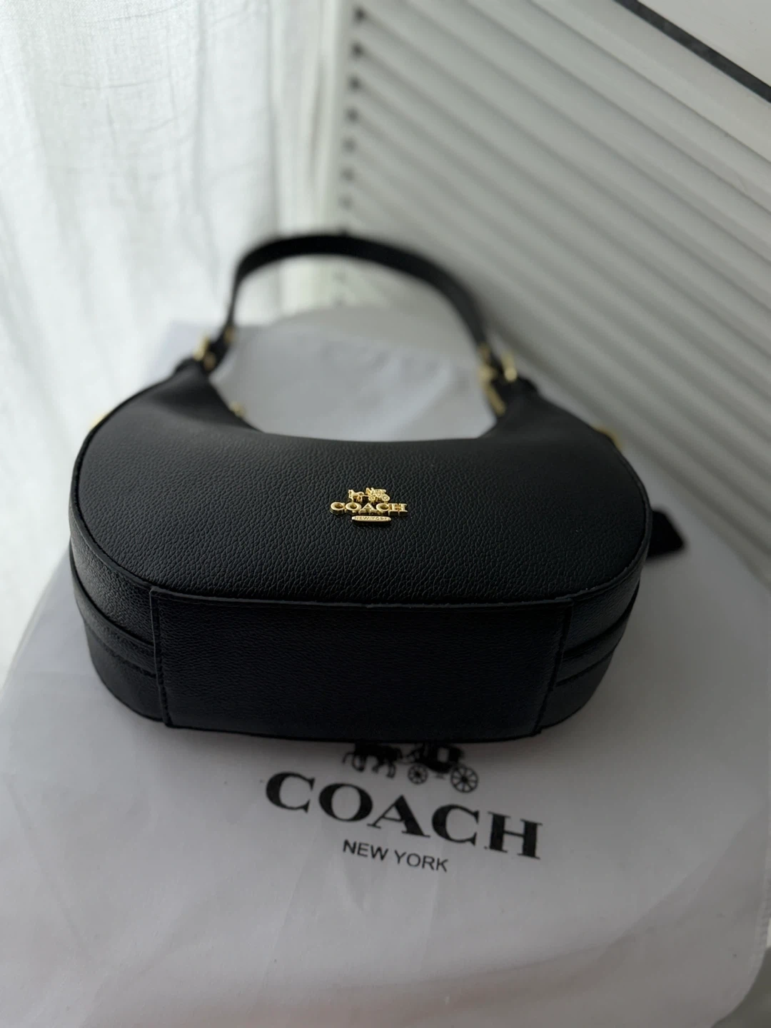 Black Leather COACH Hobo Shoulder Bag with Gold Hardware