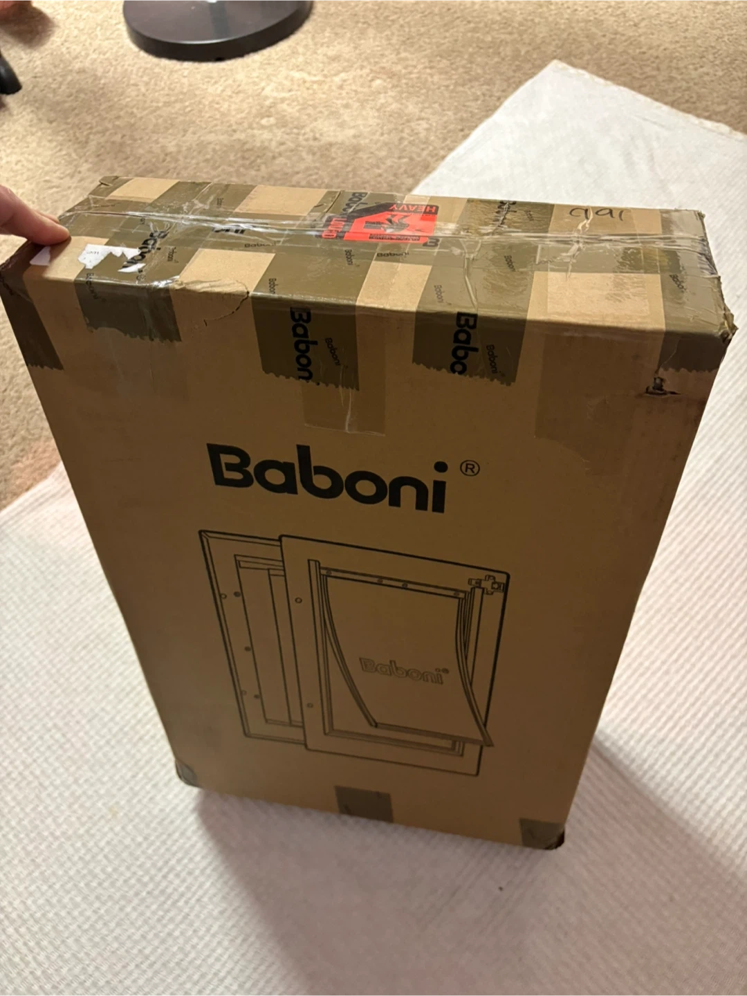 This is a Baboni pet door, size large with a 2-flap design. It's made for keeping pets in or out. Useful for homes with pets needing quick access.