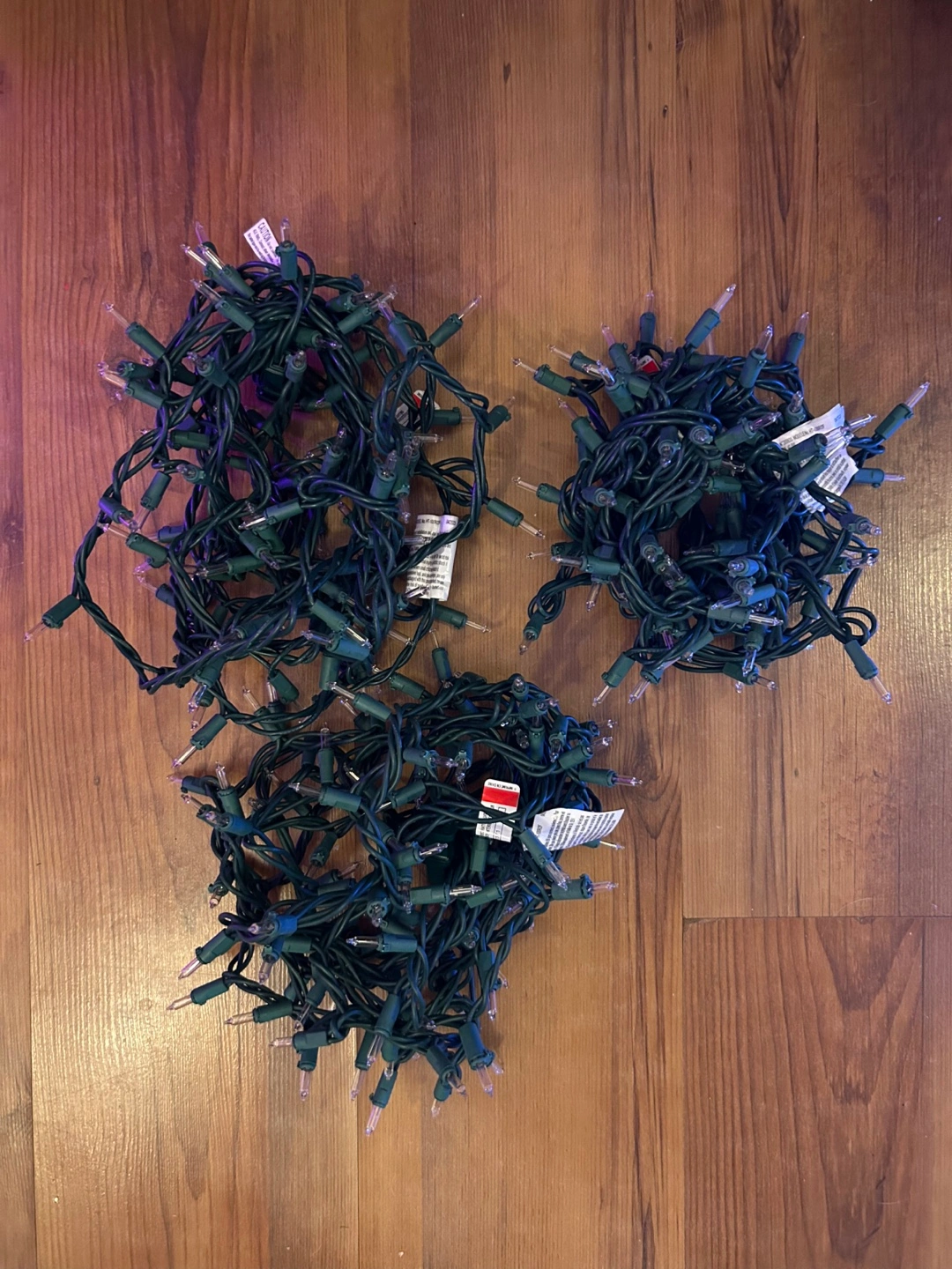 Offering string lights, suitable for a variety of purposes. Several strands, all with green wiring and warm white bulbs. Great for making your living space feel even cozier.
