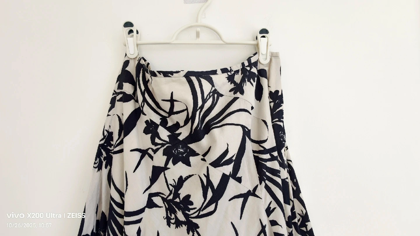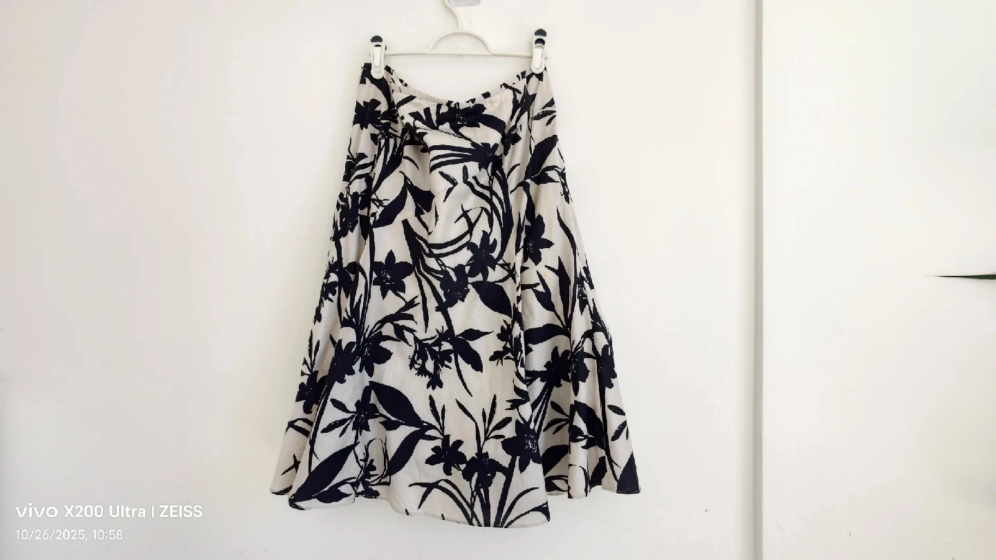 This is a cute Ann Taylor skirt in size 8! It has a lovely floral pattern in black and cream colour. The shell is 100% cotton and lining is 100% cotton. It's in great condition and ready for a new home