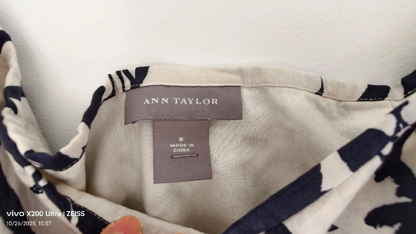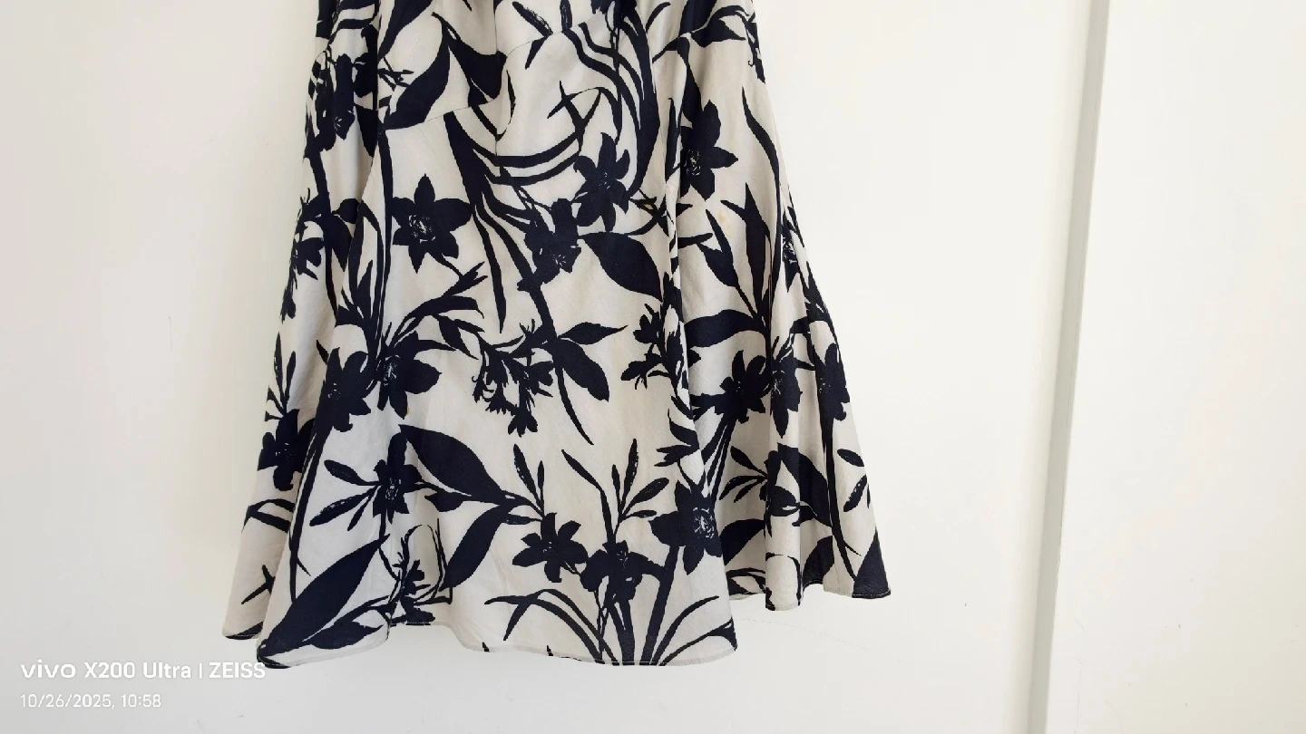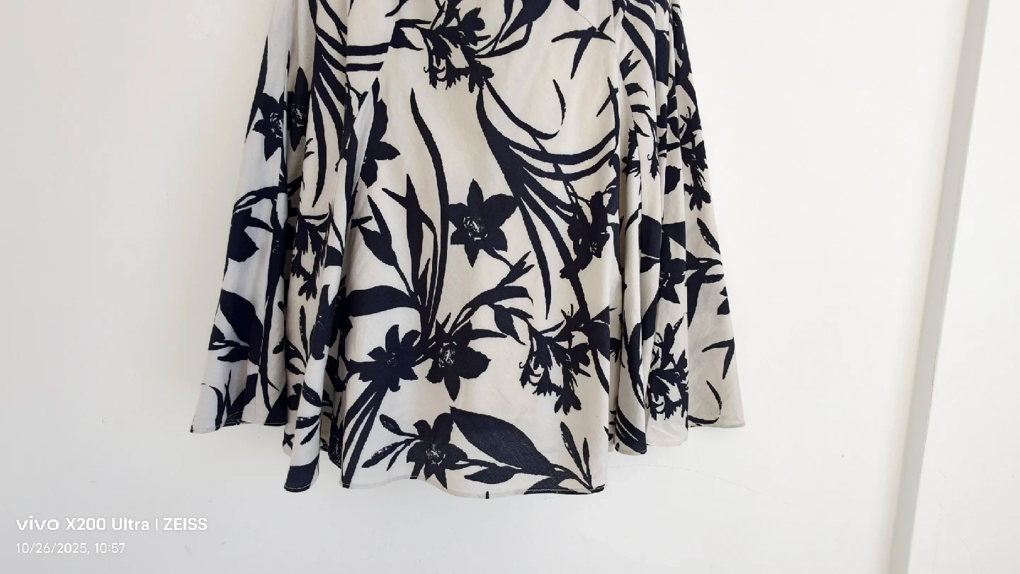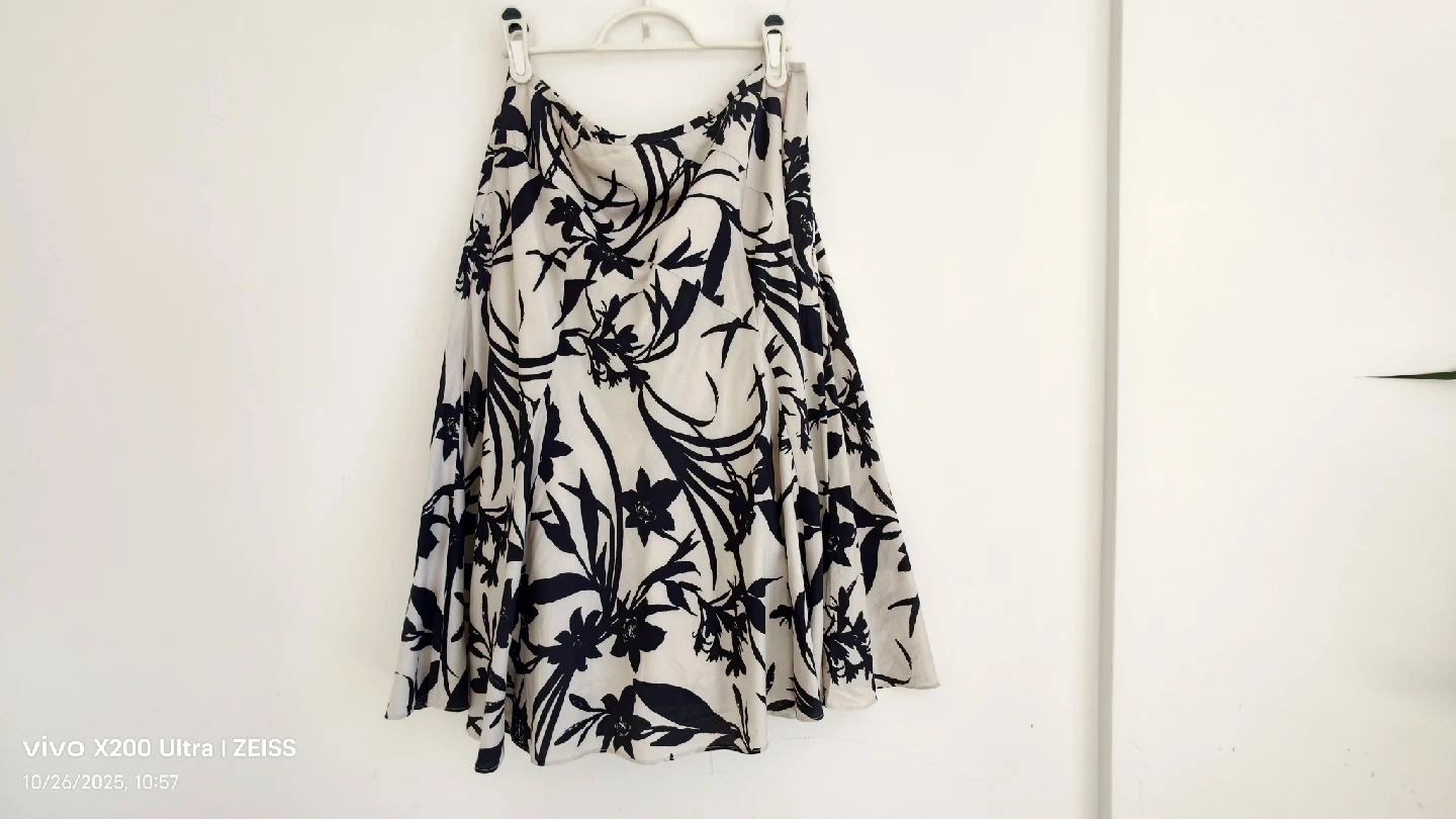 This is a cute Ann Taylor skirt in size 8! It has a lovely floral pattern in black and cream colour. The shell is 100% cotton and lining is 100% cotton. It's in great condition and ready for a new home