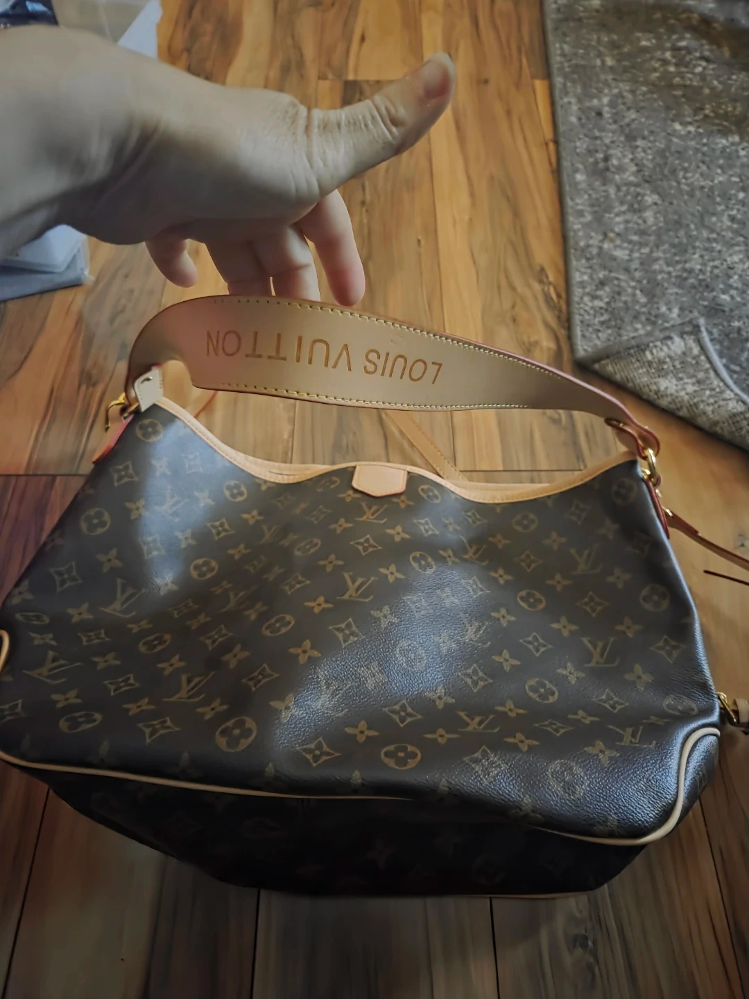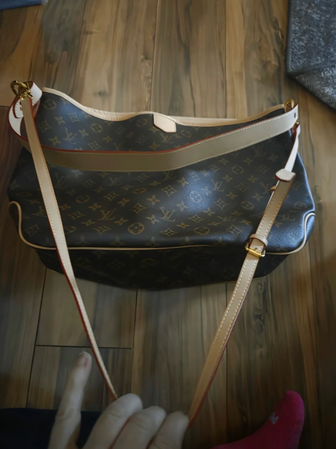 This is a Louis Vuitton shoulder bag. It's made with the classic monogram canvas and leather trim. The strap is adjustable for comfort.