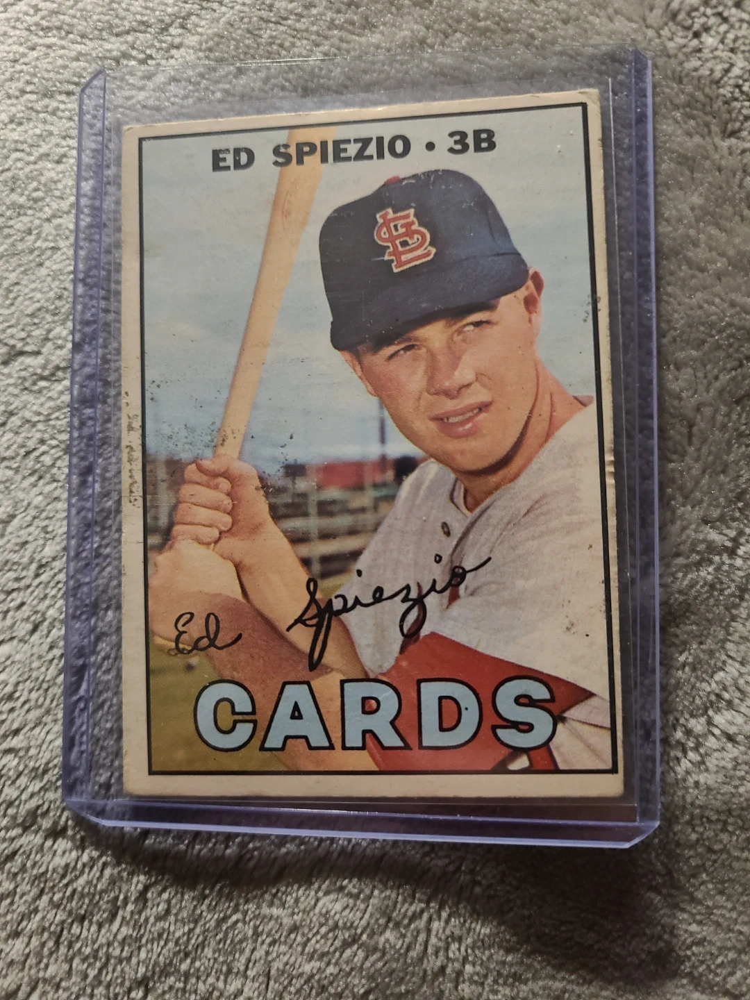 1967 Topps baseball card featuring Ed Spiezio, St. Louis Cardinals, number 128. Includes player stats and biographical information on the reverse.