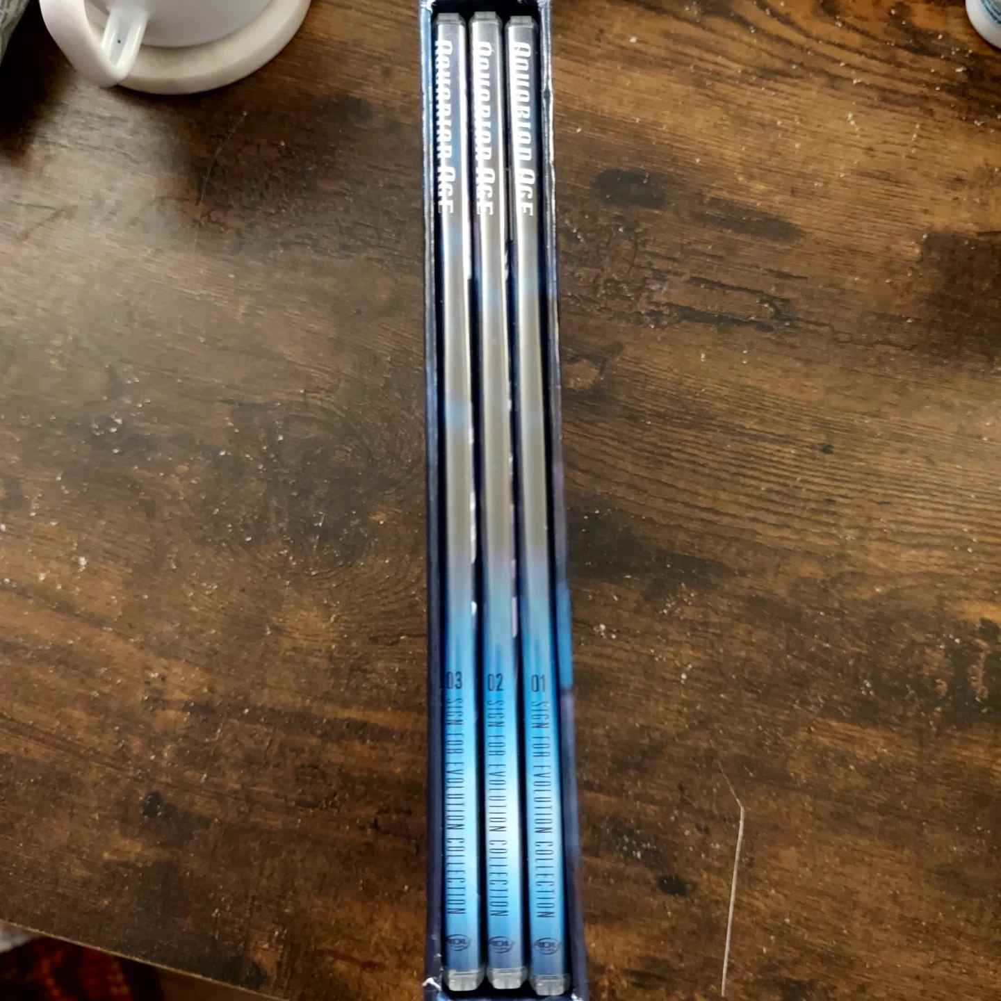 This is the complete Aquarian Age Sign for Evolution Collection DVD set. It includes three discs with the full anime series episodes 1-13. The set comes in its original slipcase. Some damage to box. Discs in like new conditon. Cash only. Price is firm. Pick up at Pape Station.