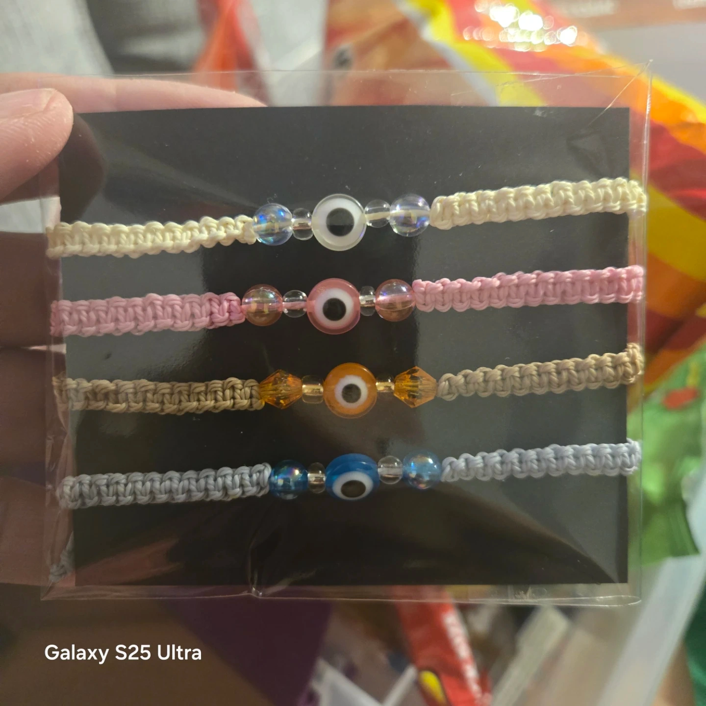 Selling a brand new set of four evil eye bracelets! These bracelets come in a variety of colours, including white, pink, tan, and blue. Perfect for stacking or sharing with friends