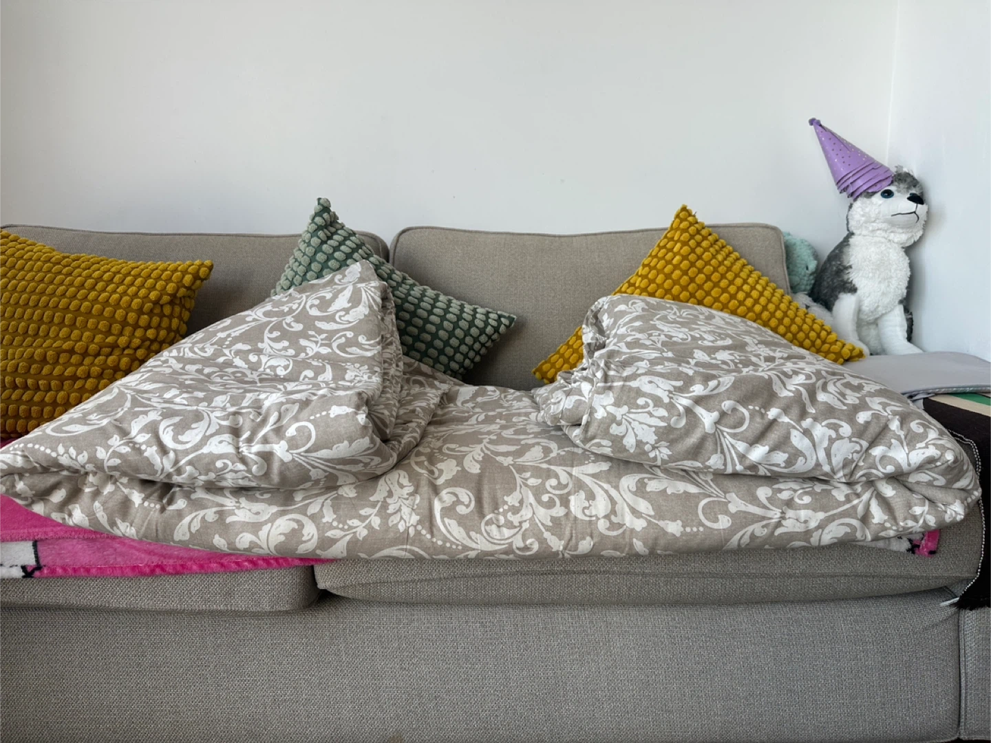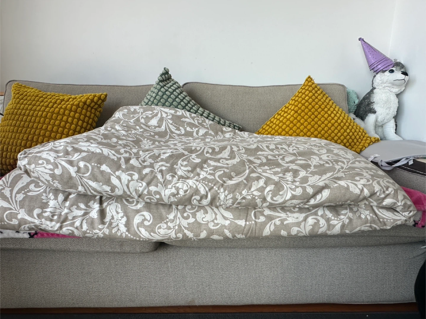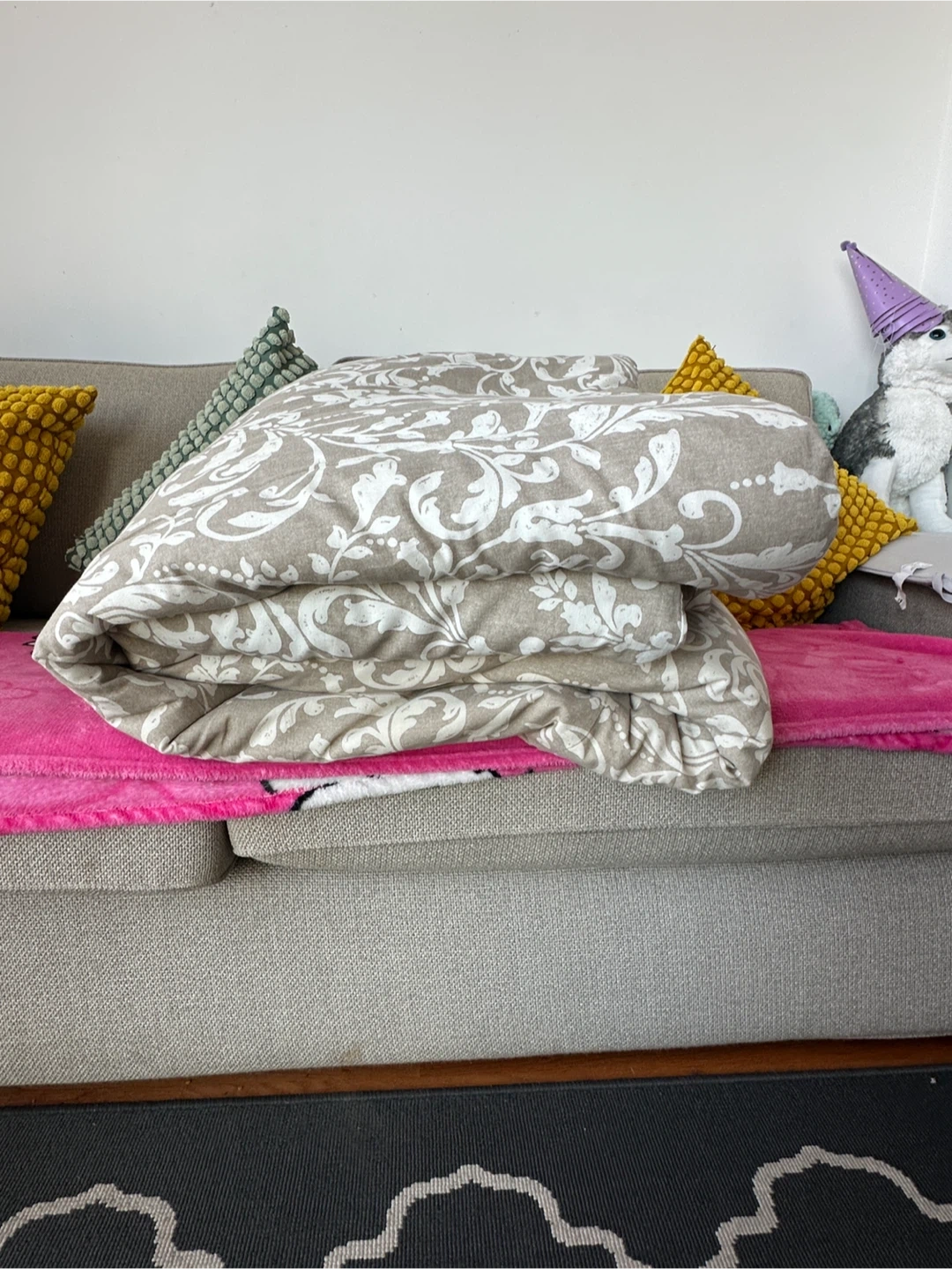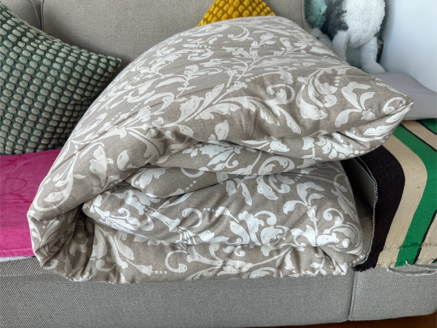 This duvet plus the cover which has a classic damask pattern in beige and white. It's made of a soft fabric, perfect for any bedroom. Provides a cozy feel for comfortable sleep!