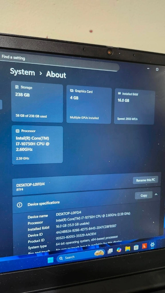 Lenovo Ideapad Gaming laptop 3i in perfect condition. No scratches. Comes with power cord only. Able to test before purchase. Great for gaming and studying. Firm on price. Pick up only. Processor: 10th Gen Intel Core i7-10750H | Speed: 2.6 GHz (Base) - 5.0 GHz (Max) | 6 Cores | 12MB Cache. OS: Pre-Loaded Windows 10 Home with Lifetime Validity. Memory and Storage: 16GB RAM DDR4 3000Mhz. Storage: 256 GB SSD m.2. Graphics: NVIDIA GeForce GTX 1650 4GB GDDR6 Dedicated Graphics. Display: 15.6" Full HD (1920x1080) | Brightness: 250 nits | Anti-Glare | IPS Technology | 60 Hz Refresh Rate. Battery Life 94%.
