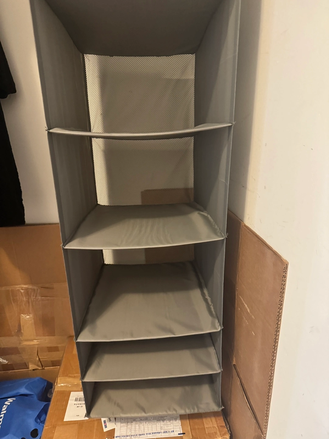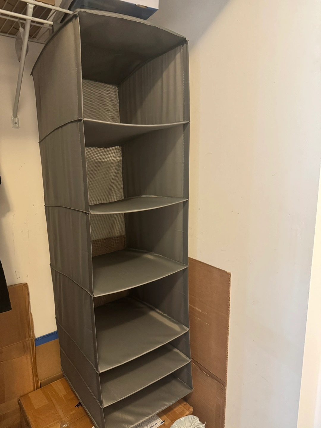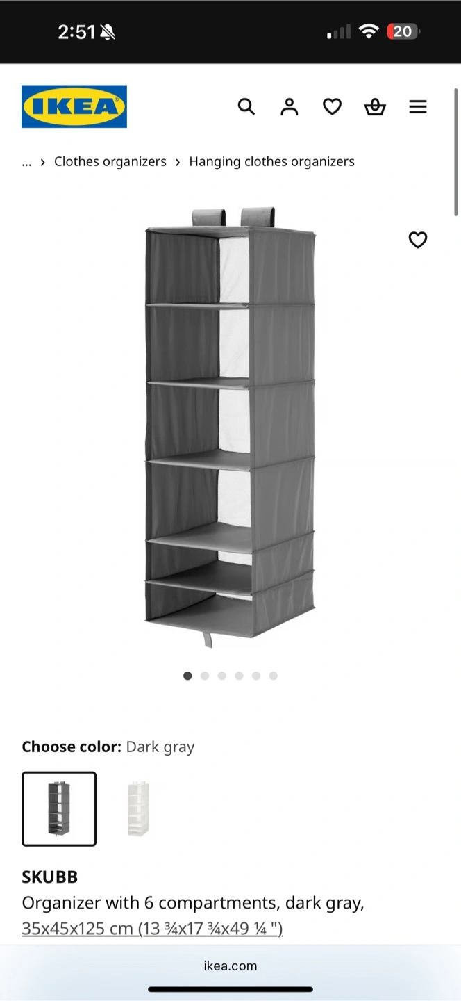 Selling a gently used IKEA Skubb hanging organizer in dark grey. It has 6 compartments. Dimensions are 35x45x125 cm. Great for adding extra storage to your closet!