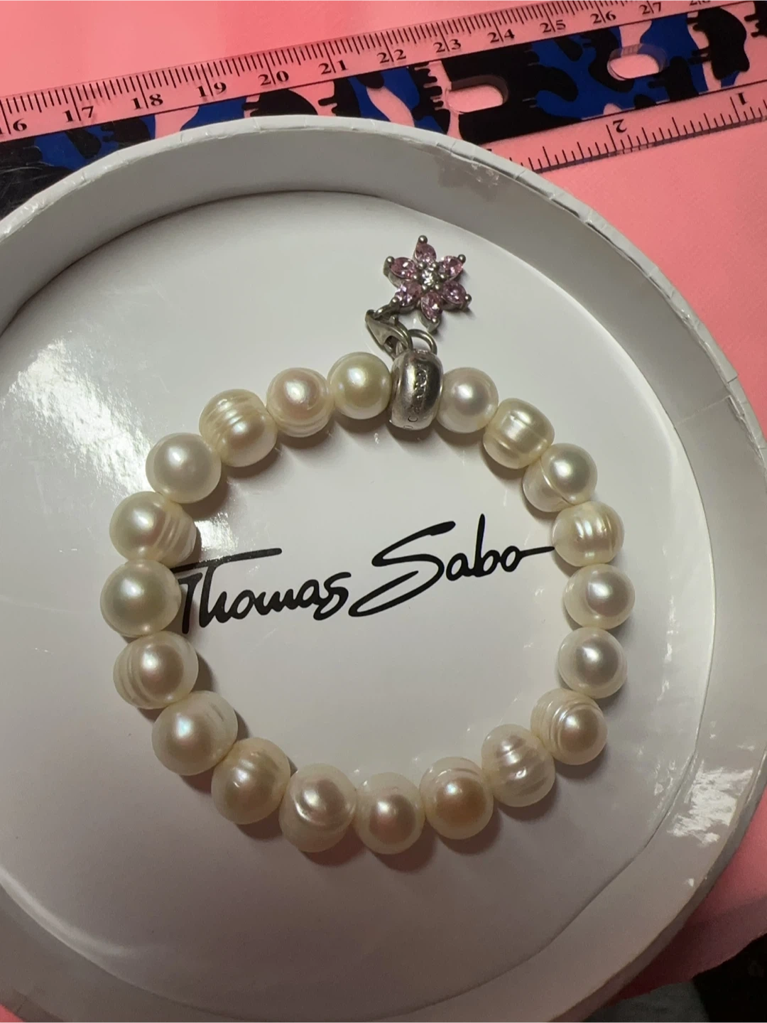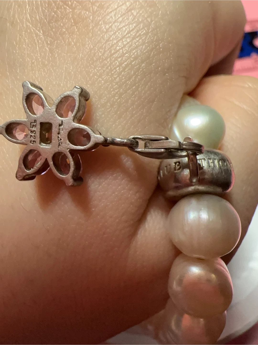 Thomas Sabo Real Pearl Charm Bracelet with Pink Stone Flower