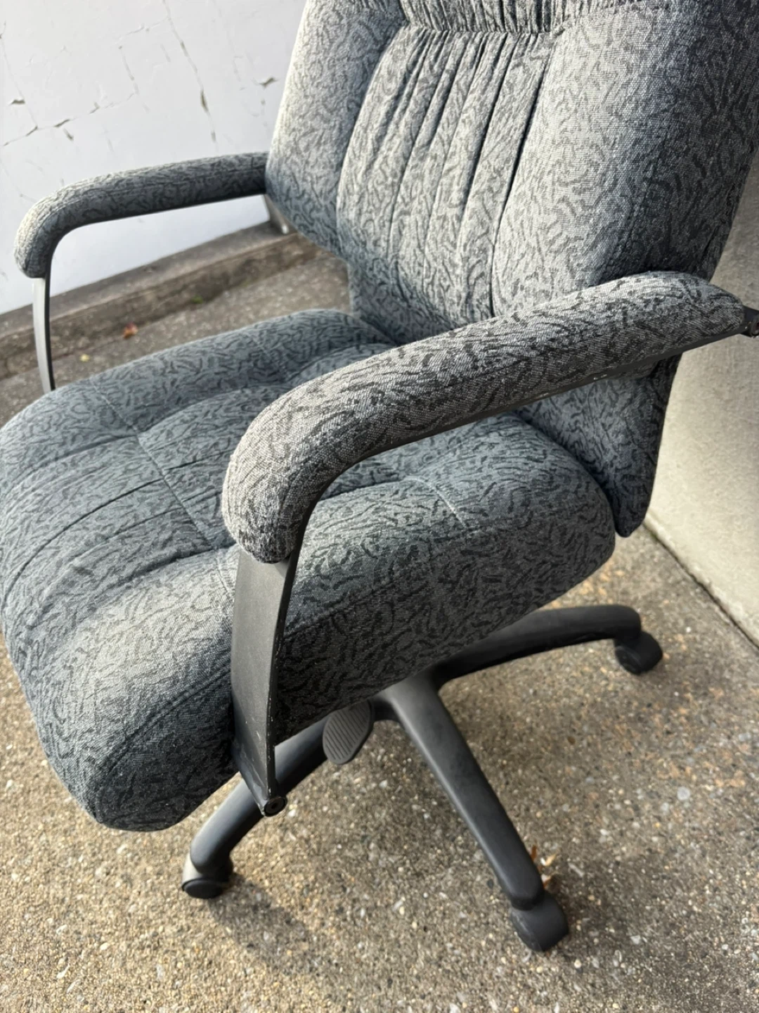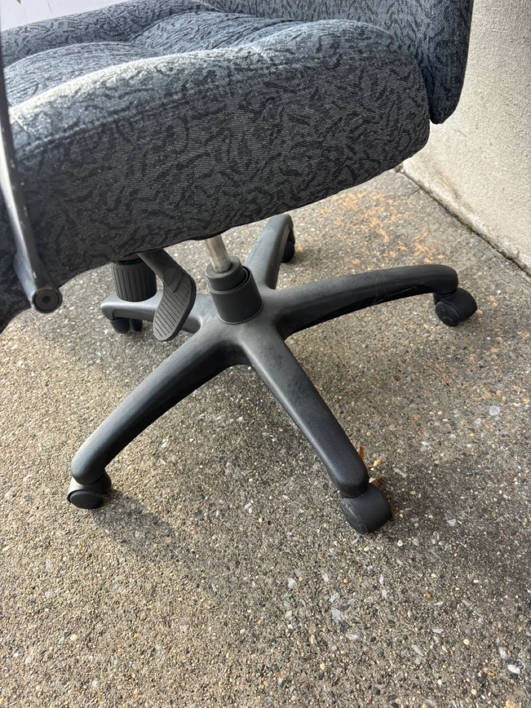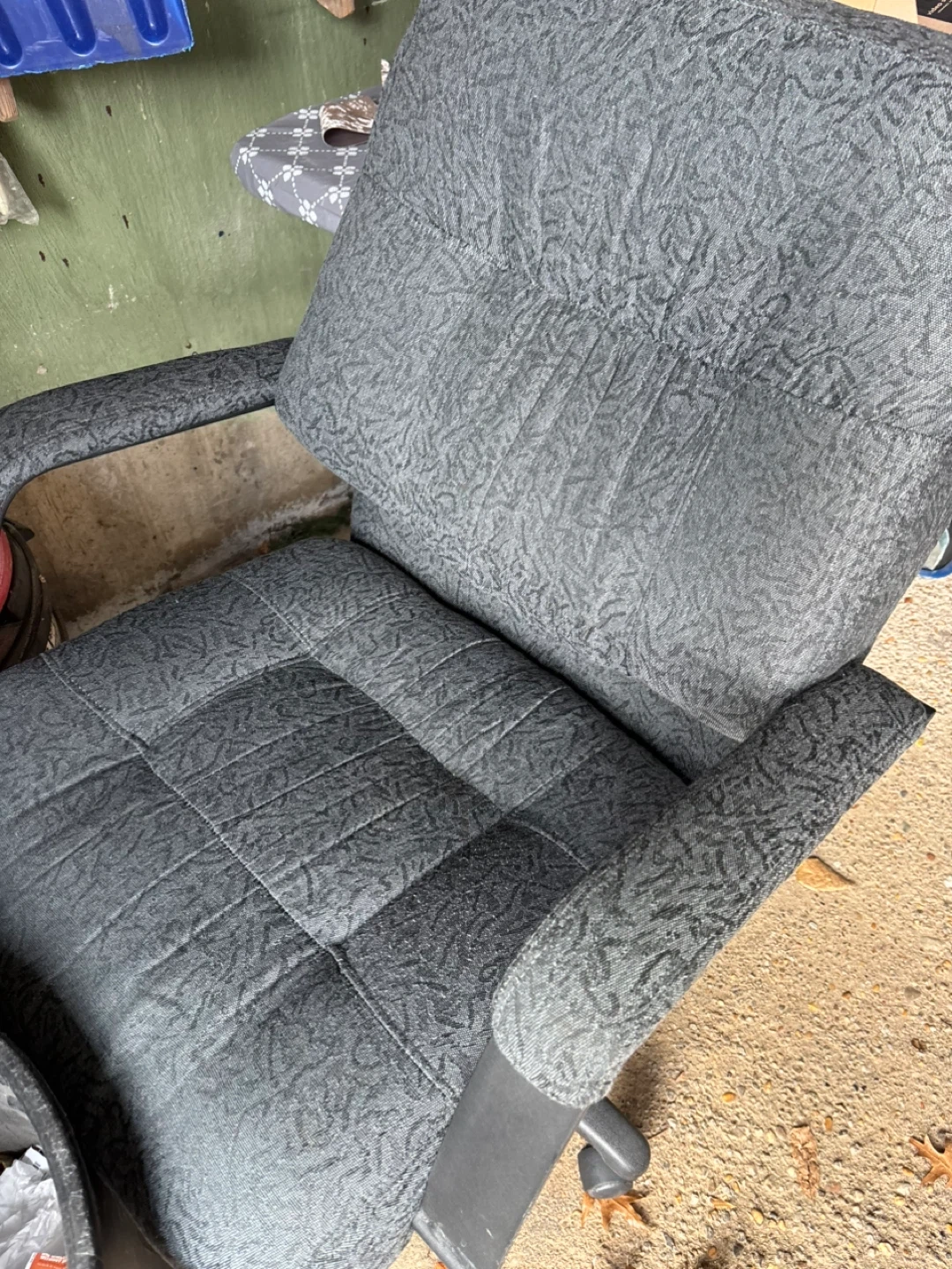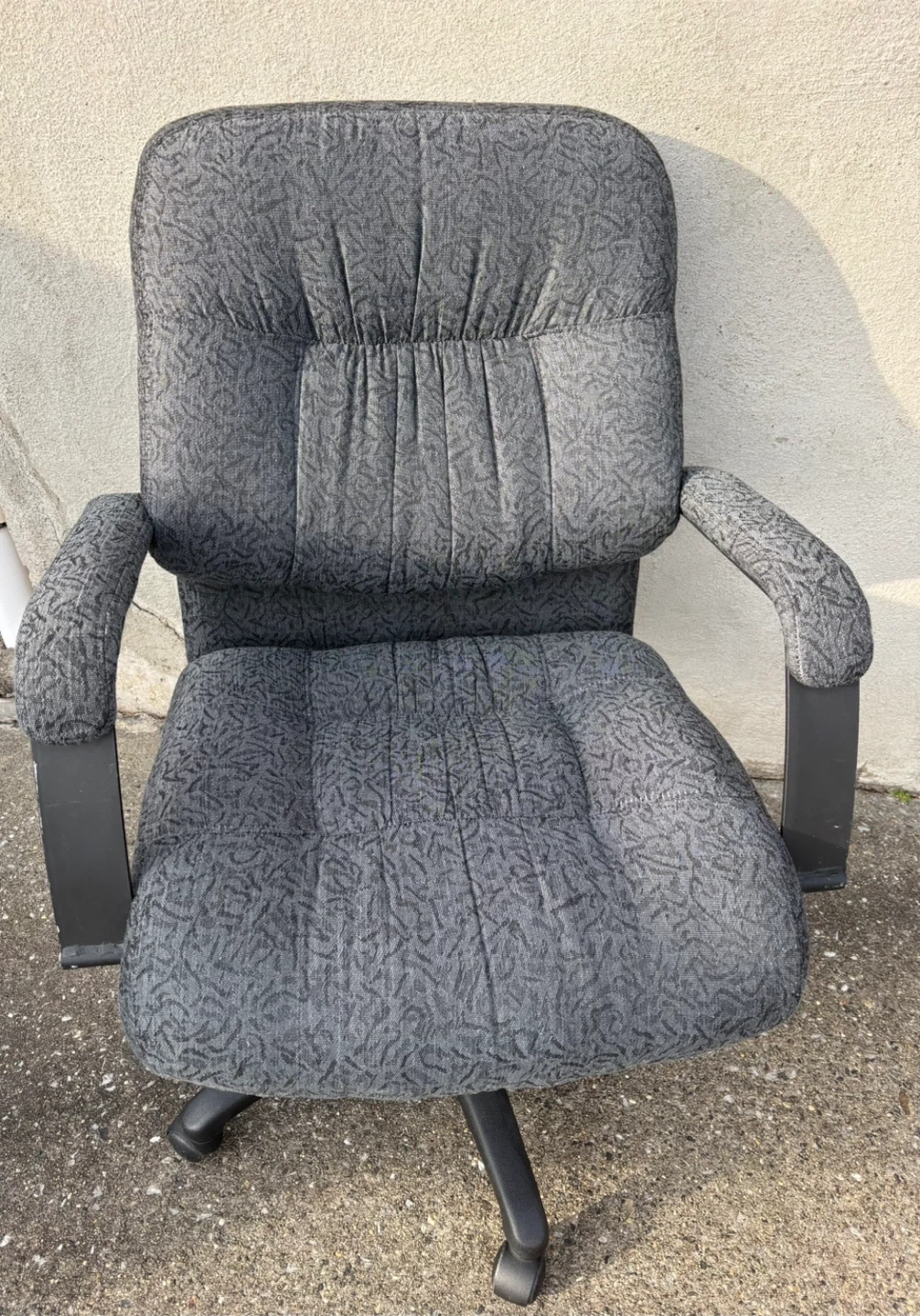 Office chair in gray color. It has a padded seat and back for comfort. It's in good condition and ready for your home office