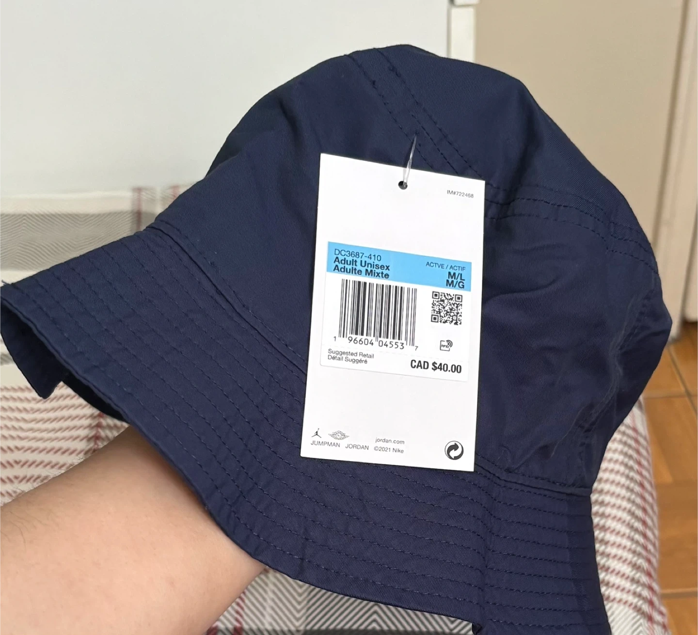 This is a Adult Unisex Jordan Jumpman Washed Bucket Hat. It's made from a 60% cotton and 40% nylon blend.