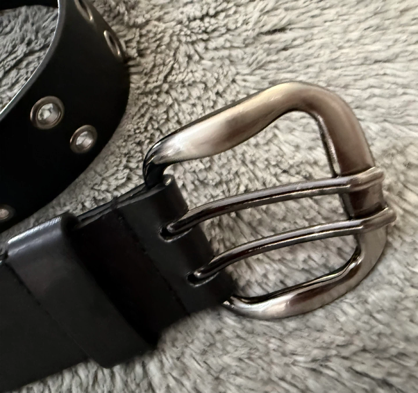 Buy & SellBlack Belt with Eyelets and Silver Buckle - ML/MGBlack Belt with Eyelets and Silver Buckle - ML/MG$8Black faux leather belt with a full row of silver eyelets and a double-prong buckle. Size ML/MG. Manmade materials. 39” lengthConditionLike newSizeM/LBrandUnbranded WHERE TO MEET118 Markville RoadView MapSELLERverifiedMamaKassaUnionville50650 reviews0 chats·0 favorites·1 viewsSEND CHAT TO SELLERHi MamaKassa! I’m interested in your listing.Hi MamaKassa! I’m interested in your listing.Get the Karrot app to chatSign In to chat