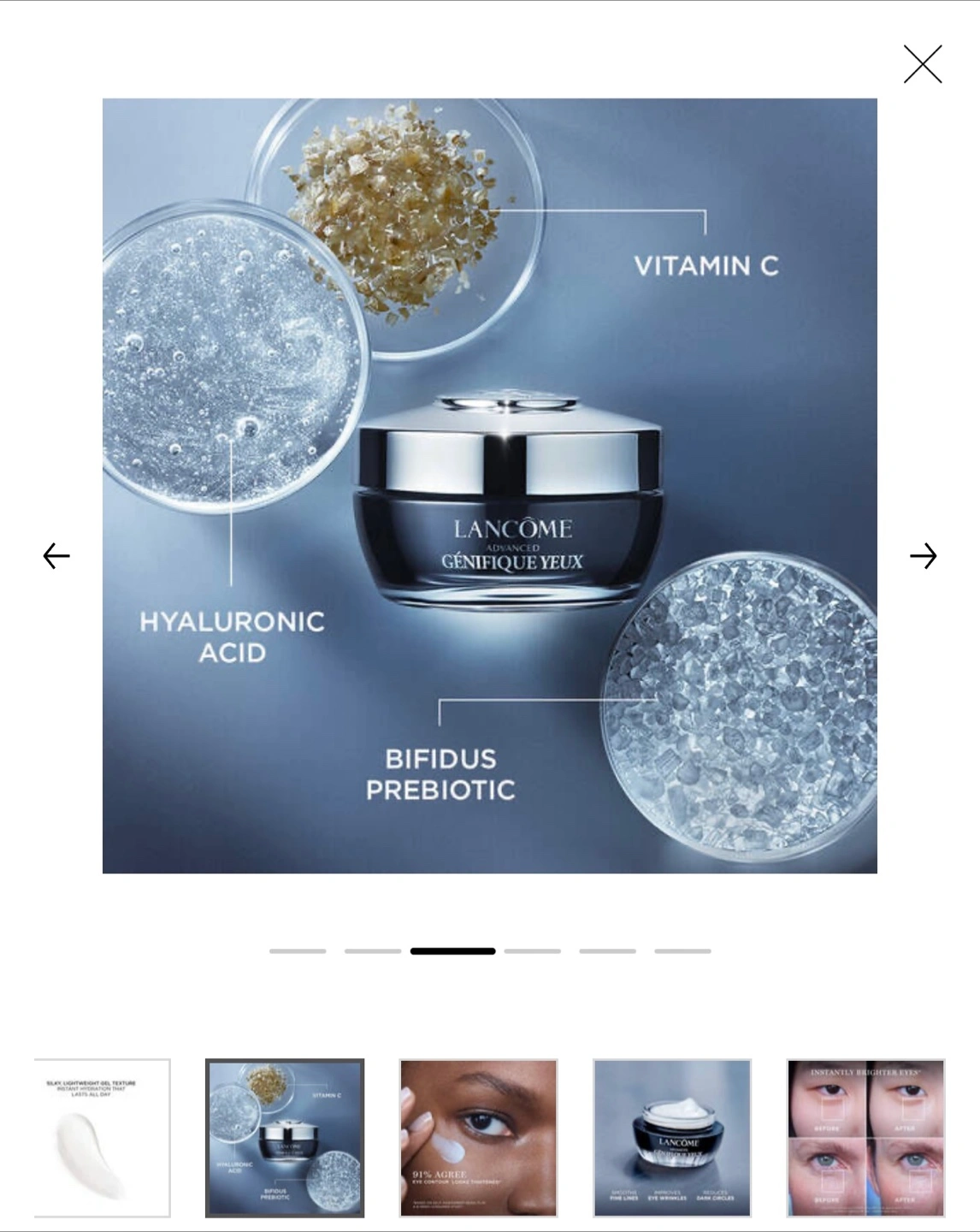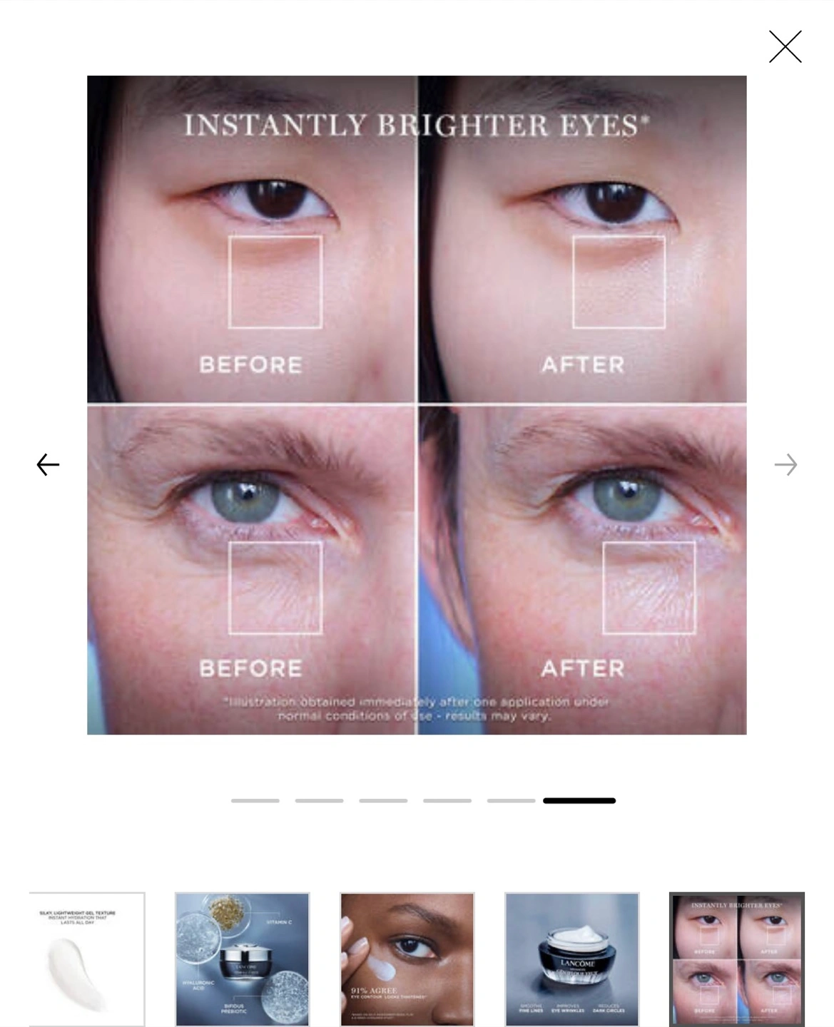 Youth activating and light infusing eye cream. Contains hyaluronic acid, vitamin C, and bifidus prebiotic. Reduces wrinkles, dark circles, and crow's feet. 15ml/0.5 fl oz.