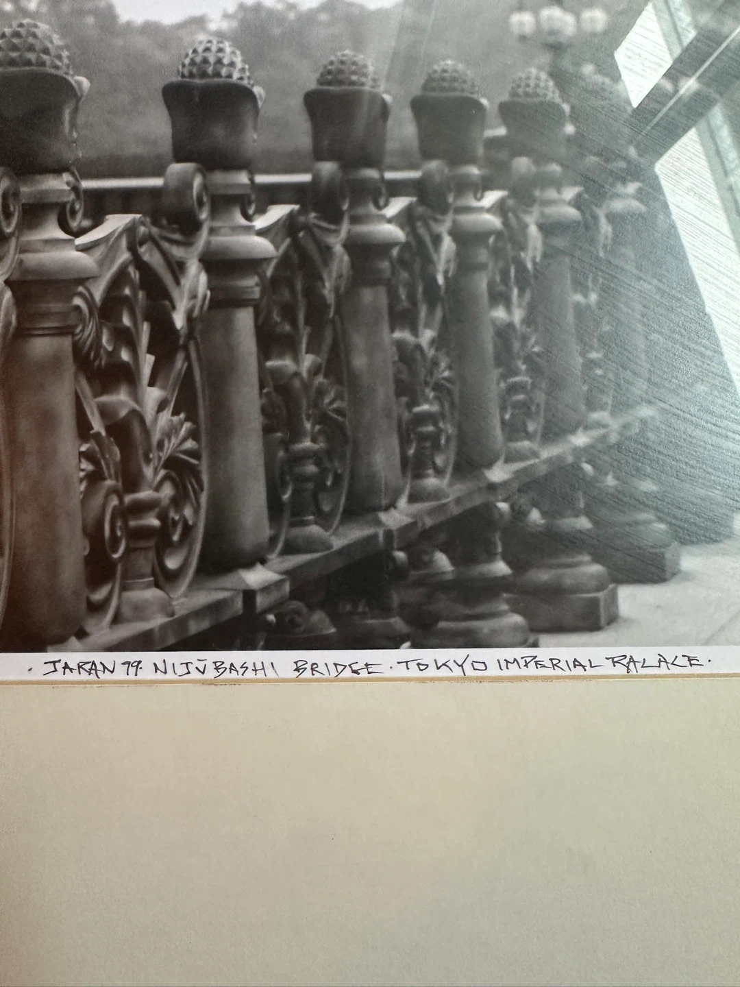 An original black & white photo of the imperial palace and bridge tokyo japan. Minor blemish top right