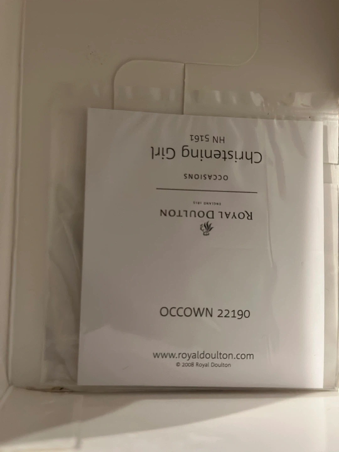 This is a Royal Doulton Christening Girl figurine, model HN 5161. It's a porcelain piece depicting a baby in a crib. It comes with its original packaging and documentation.