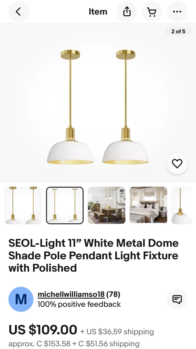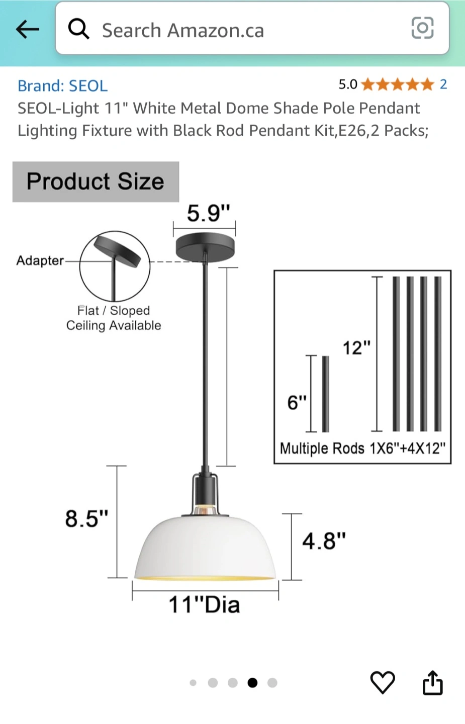 đź’ˇ SEOL-Light 11" White Metal Dome Shade Pendant Lighting Fixture with Black Rod Pendant Kit