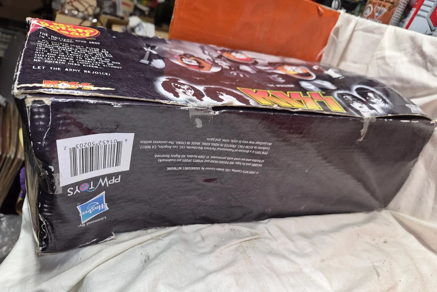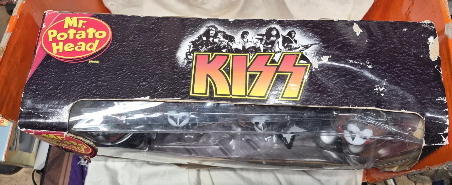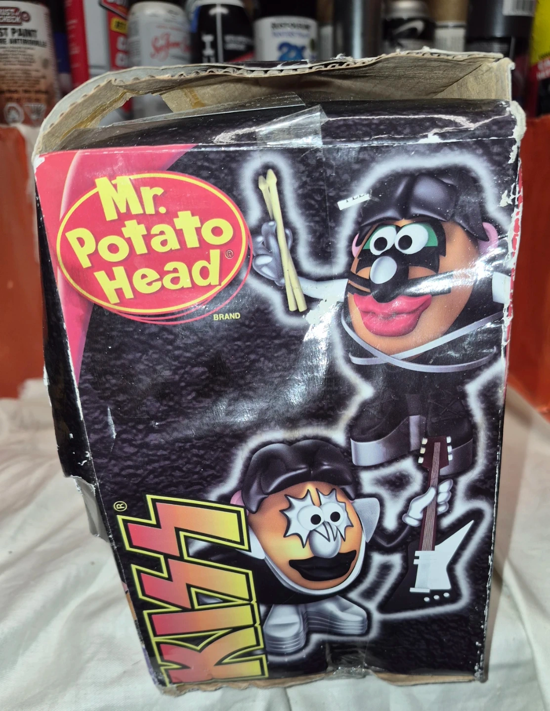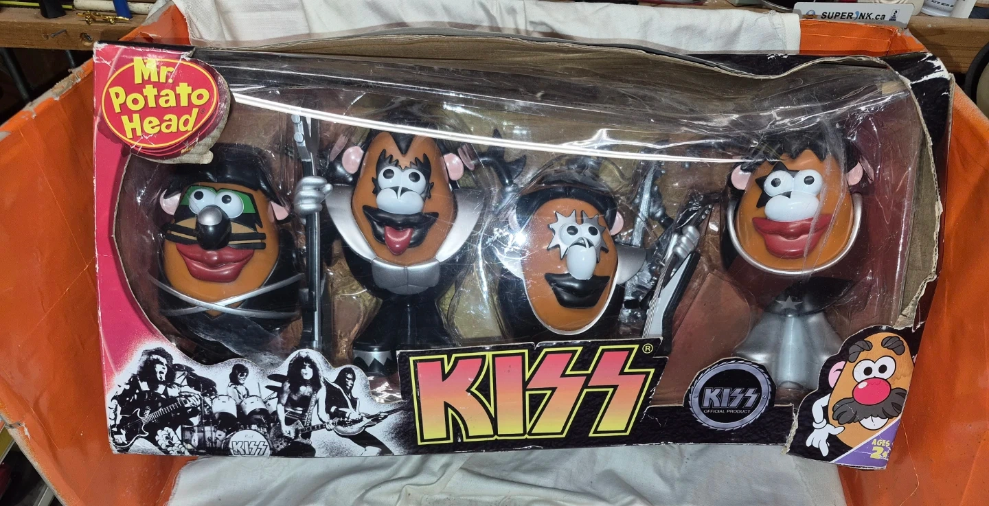 It's a Mr. Potato Head set featuring the band KISS! This collector's edition includes multiple potato figures and accessories. It's officially licensed by KISS and made by Hasbro. Figures are mint, box has some damage.