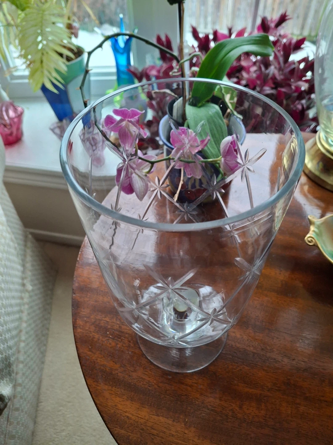 Etched/cut glass candle holder