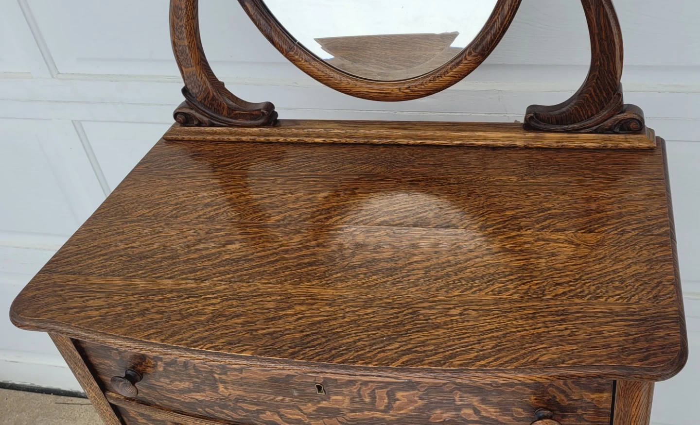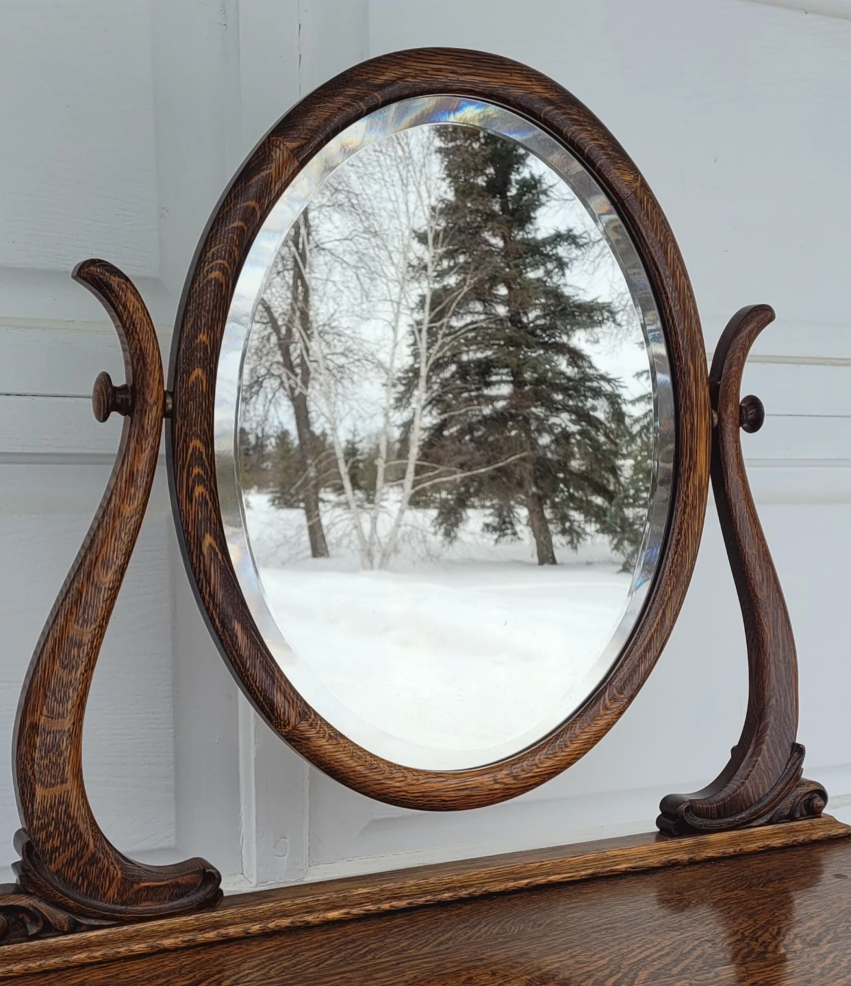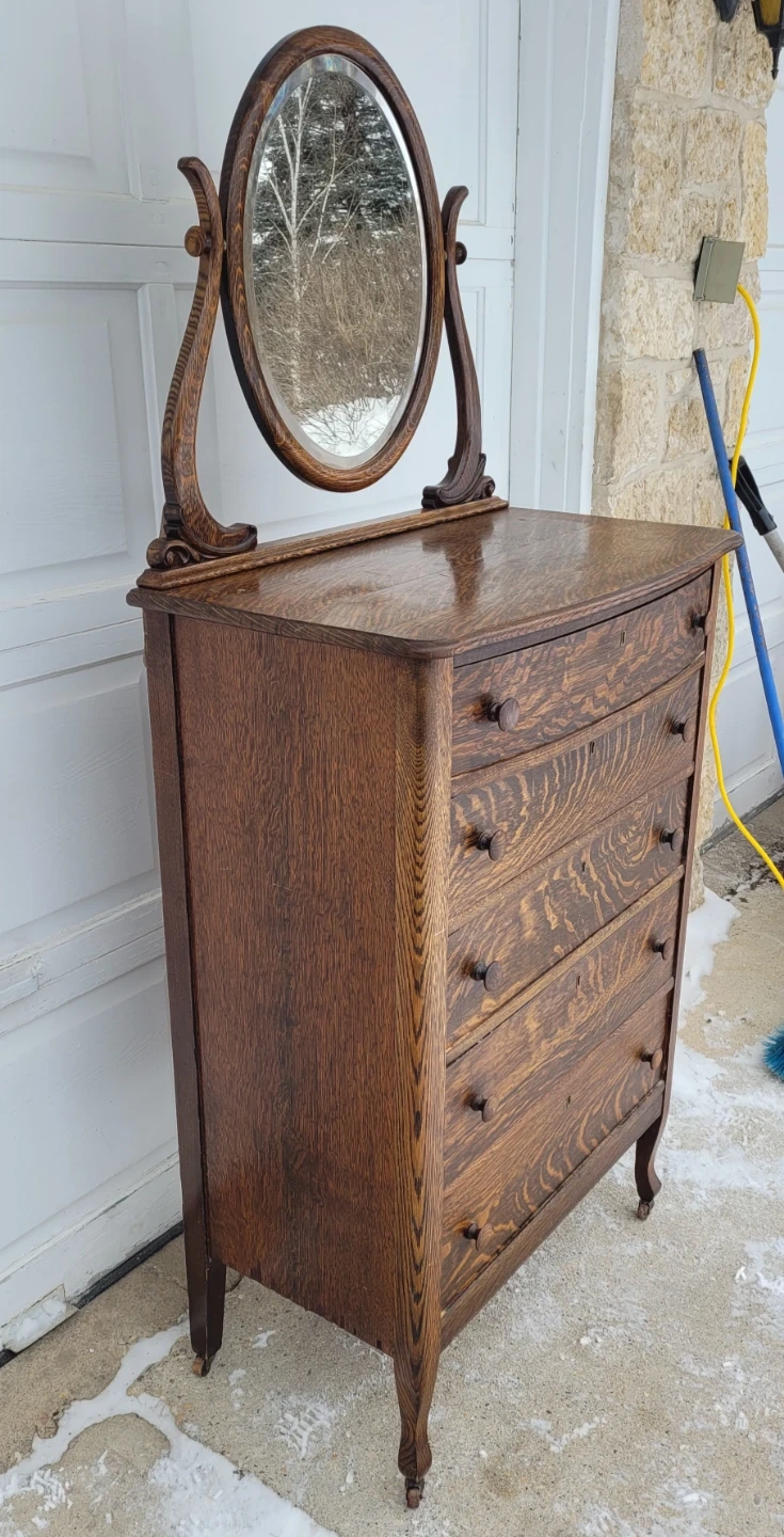 Antique Tiger Oak Highboy Dresser w/ Mirror