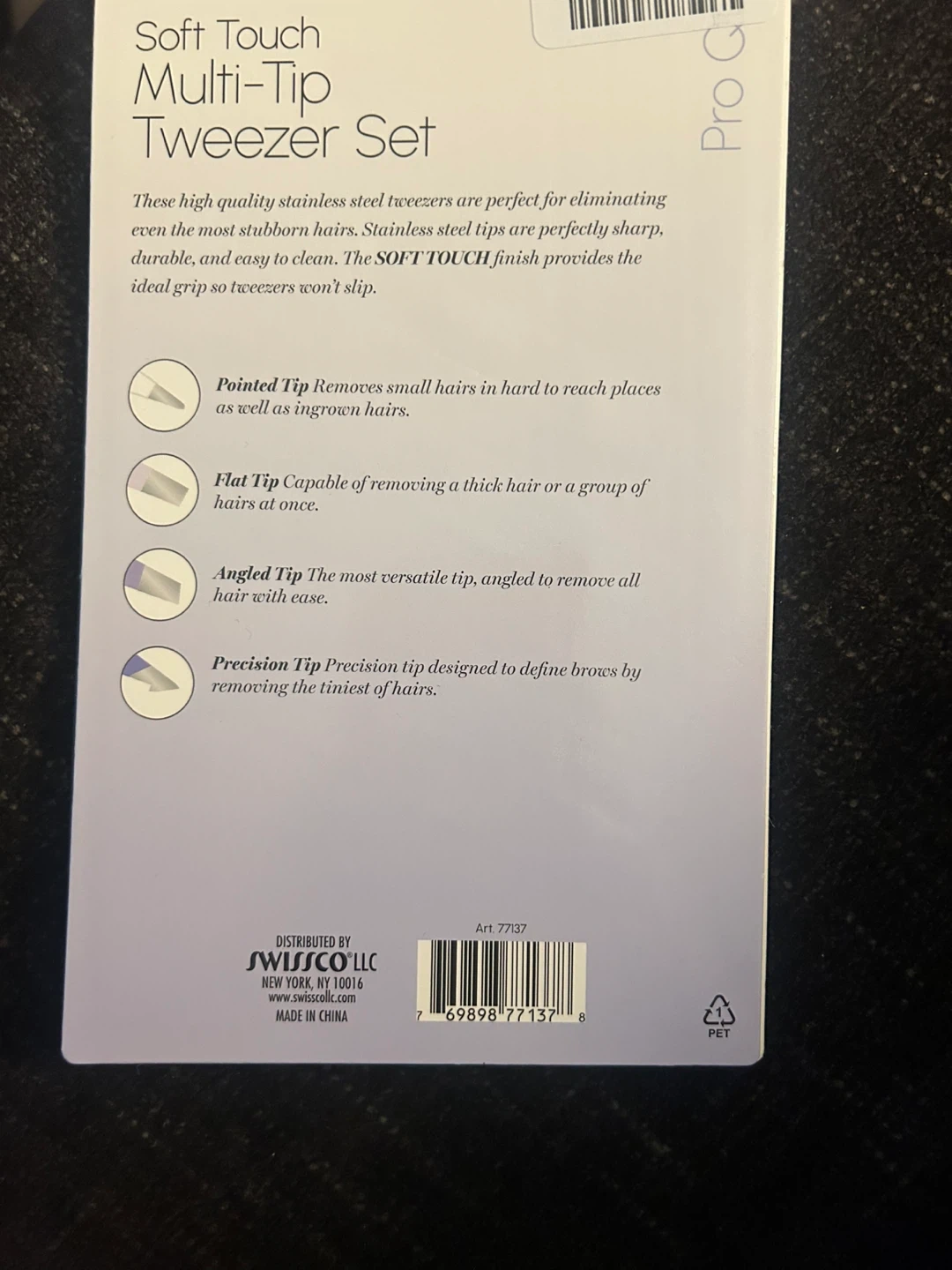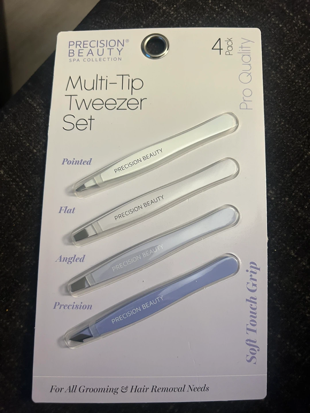 This set includes four high-quality stainless steel tweezers, each with a different tip: pointed, flat, angled, and precision. They feature a soft-touch grip for secure handling. These tweezers are designed for all grooming and hair removal needs.