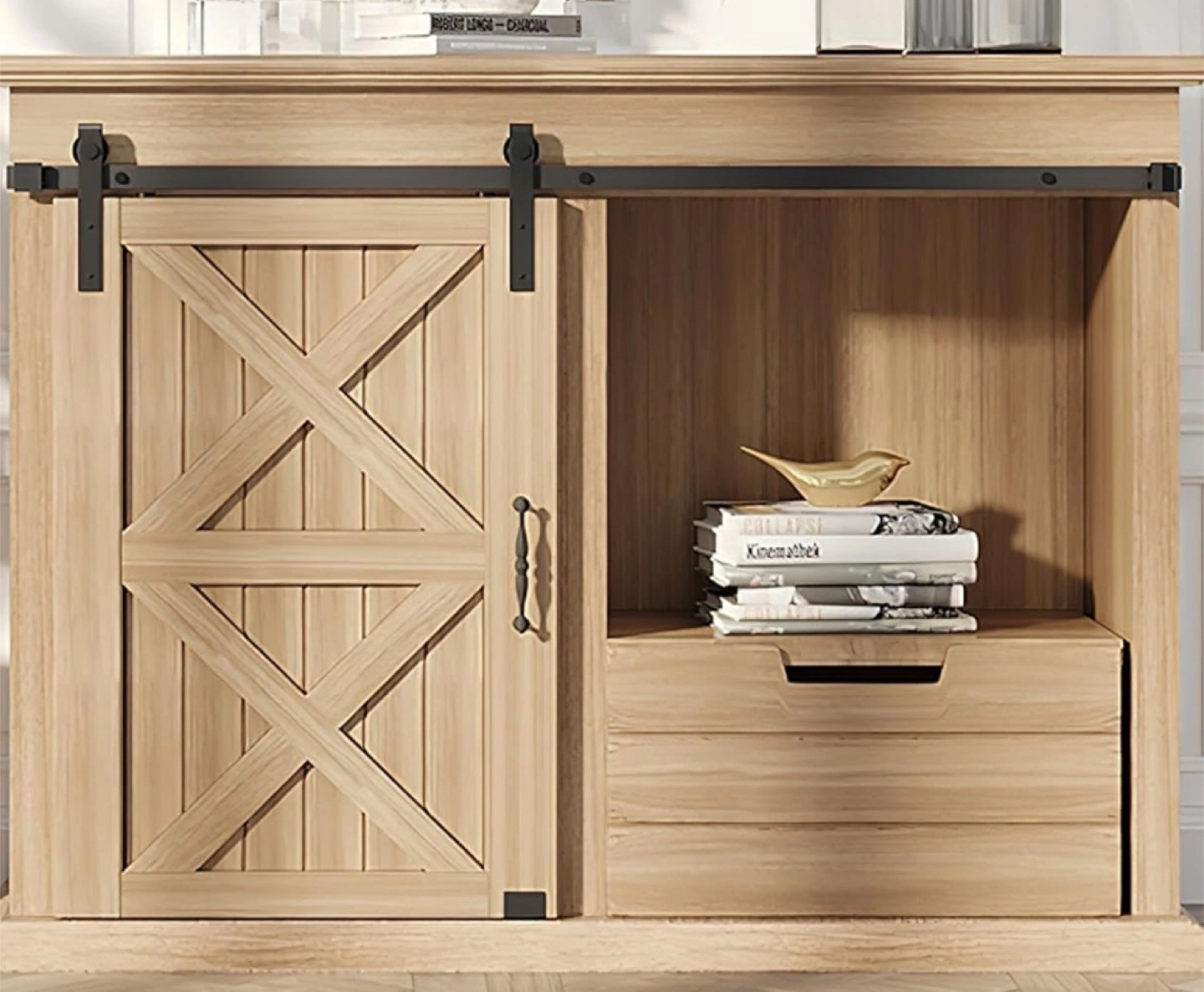 π¦ Includes β 2 tracks, 2 hangers, 2 stoppers, 2 anti-jump pads, 3 spacers, 2 floor guides (Type A/B), and adjustable roller bolts (fits doors 4/5" to 1-1/8"). No cabinet.