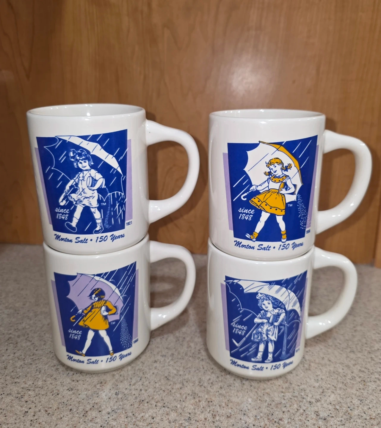 4 Vintage Morton Salt 150 Years Anniversary Mugs