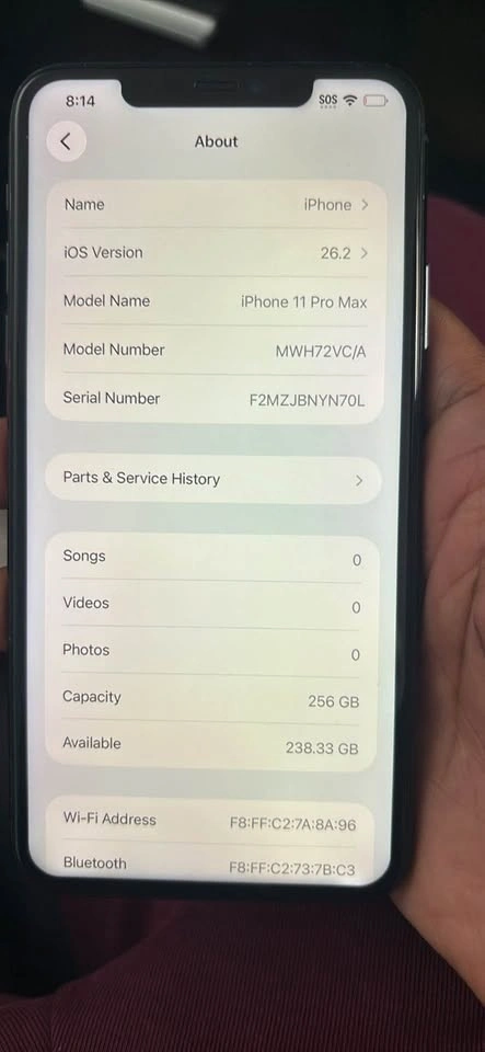 Also included is an iPhone 11 Pro Max in Midnight Green with 256GB storage. It's factory unlocked for all carriers, has a triple-camera system, and Face ID. It runs iOS. Battery health is at 77%. It's fully functional, has no iCloud lock, and is in clean condition.