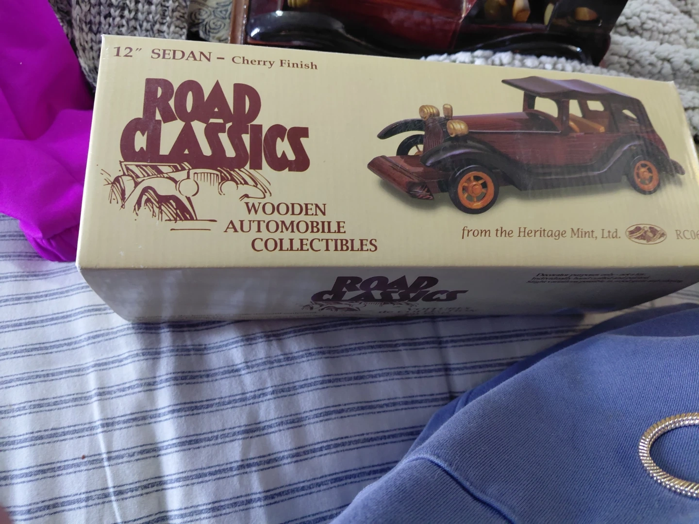This is a 12" sedan wooden automobile collectible from Road Classics. It's finished in a cherry colour. The collectible is made by the Heritage Mint, Ltd. A great piece for any car enthusiast!