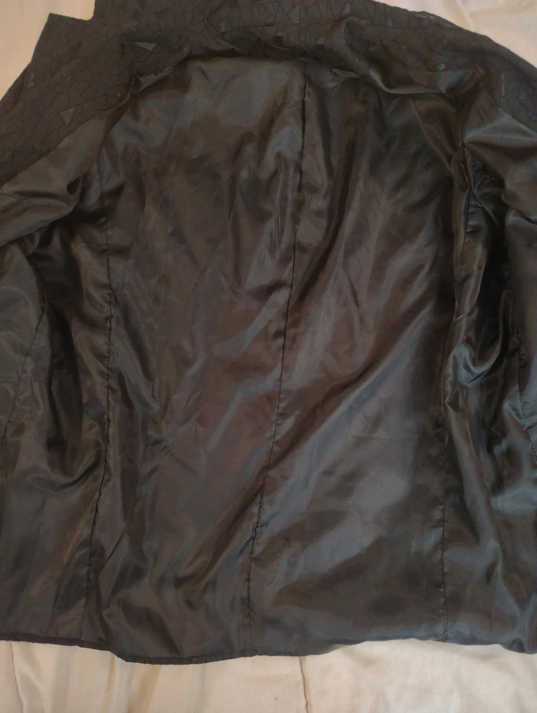 Size small Shein brand women's blazer with a unique textured pattern. It features a single button closure and has a smooth inner lining. Great for dressing up an outfit!