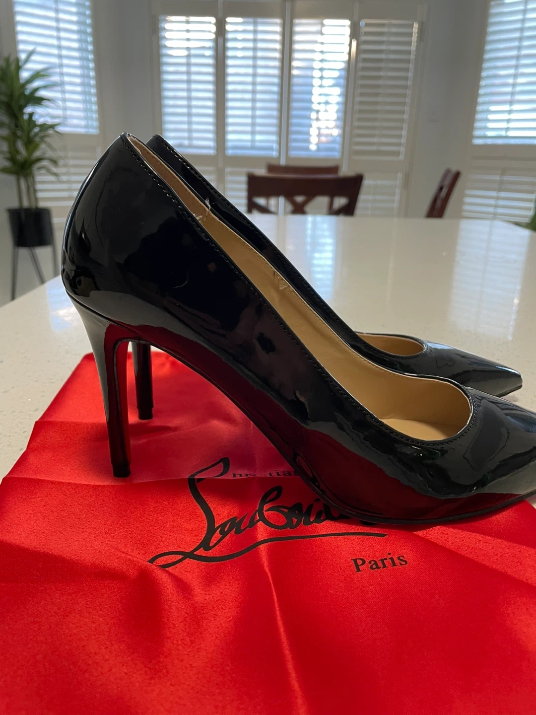 Authentic worn a couple of times Christian Louboutin black patent leather high heels. Featuring the iconic red sole. Comes with a dust bag I couldn’t find the box. Still in great condition. PICKUP BRAMPTON!!