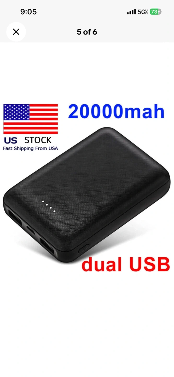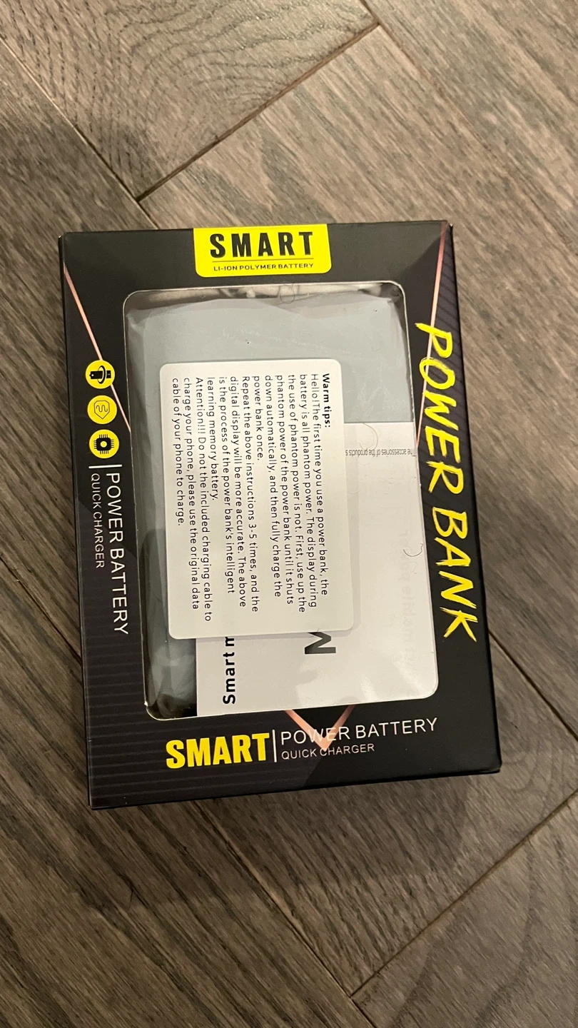 This is a SMART power bank with 20000mah capacity. It features dual USB ports for charging multiple devices. Includes original packaging and charging cable.
